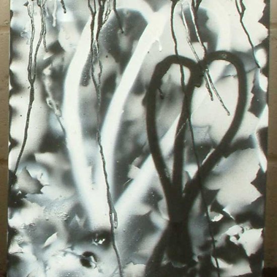 Less Colour is More (2011/12) SOMETHING BLUE, VERSION 2, December 2011 SOMETHING BLUE version 1 – spray paint on deep edge canvas 40cm x 50cm, 2011 BLACK and WHITE – spray paint on deep edge canvas 40cm x 50cm, 2011 PURPLE and SILVER – spray paint on deep edge canvas 40cm x 50cm, 2011 (sold) PURPLE – spray paint on deep edge canvas 40cm x 50cm, 2011 SILVER – spray paint on deep edge canvas 40cm x 50cm, 2011 Purple Two Mixed media on canvas 50cm x 50cm (2011) sold Purple One – Mixed media on canvas 50cm x 50cm (2011) (sold) Share this: Click to share on Facebook (Opens in new window) Facebook Click to share on X (Opens in new window) X Like Loading...