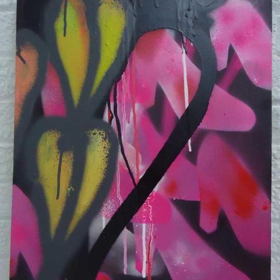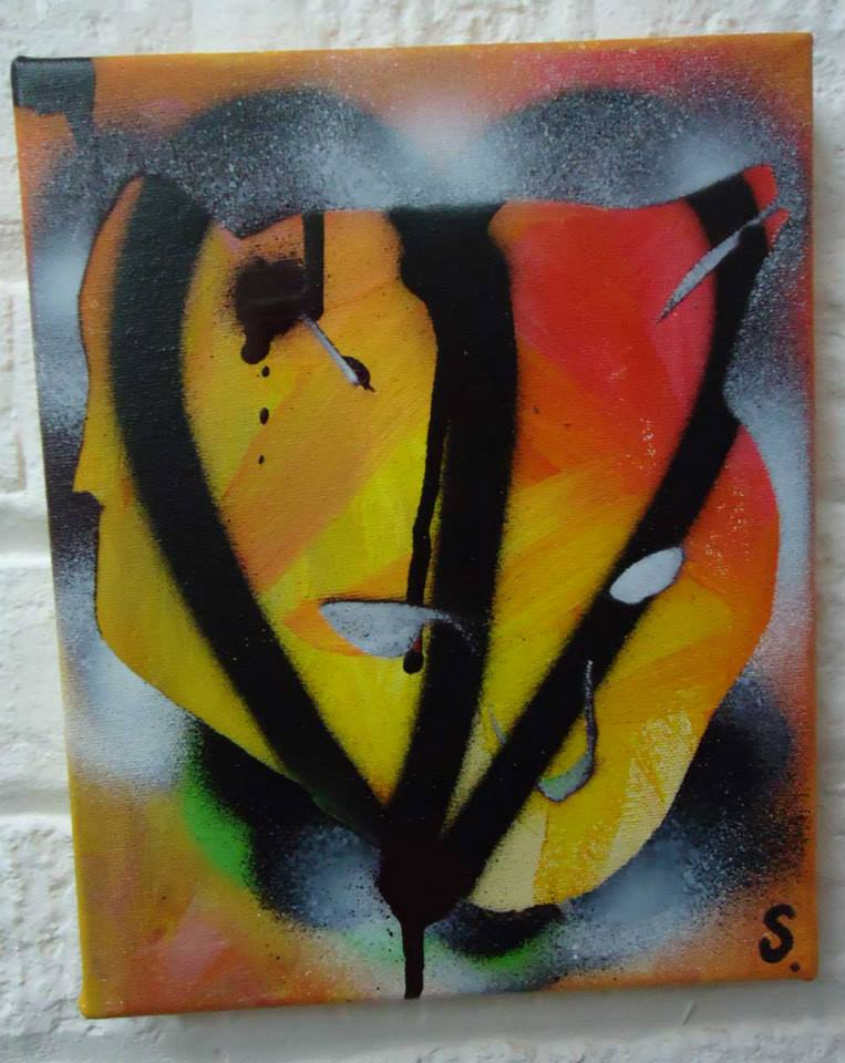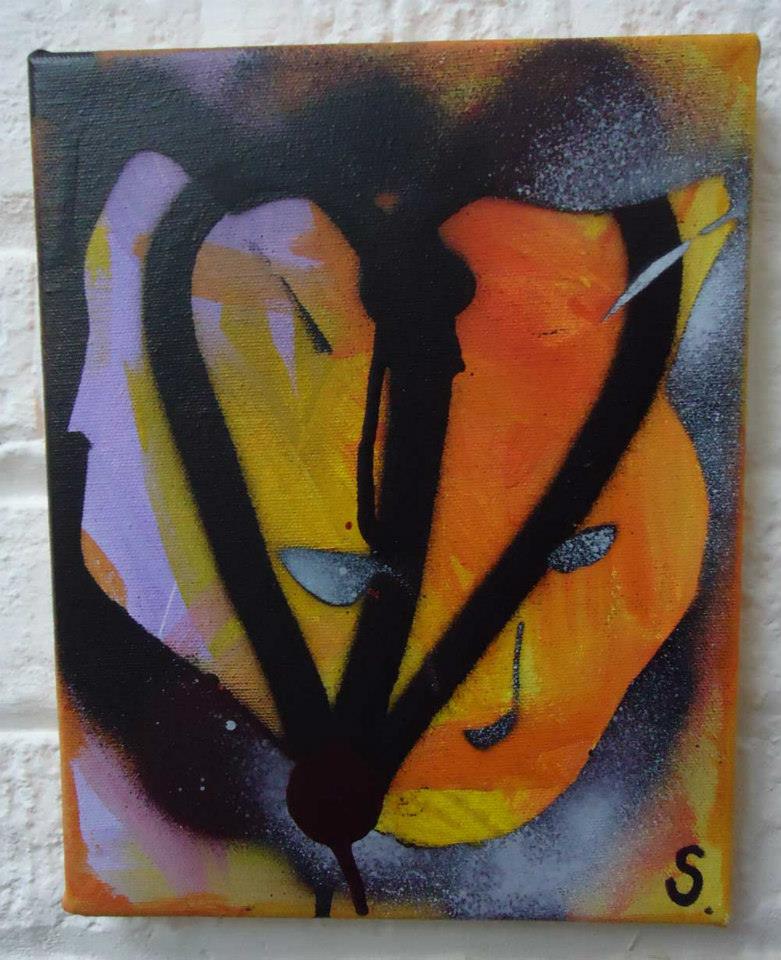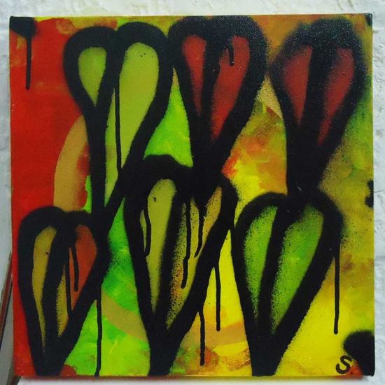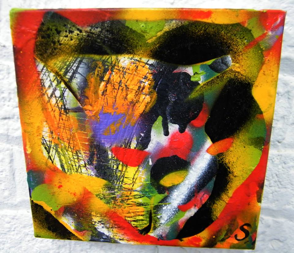 Acrylic spray paint, on canvas, 20cm x 20cm (sold)