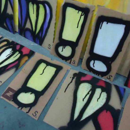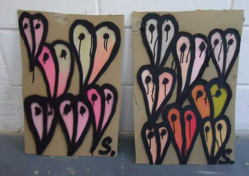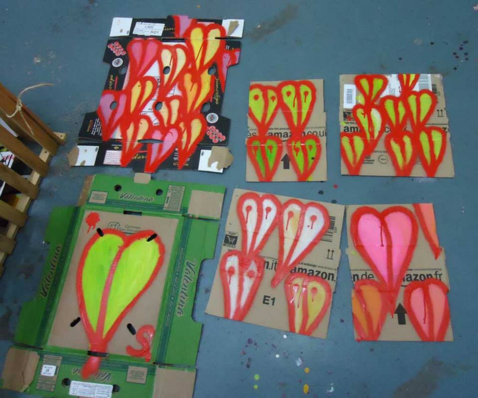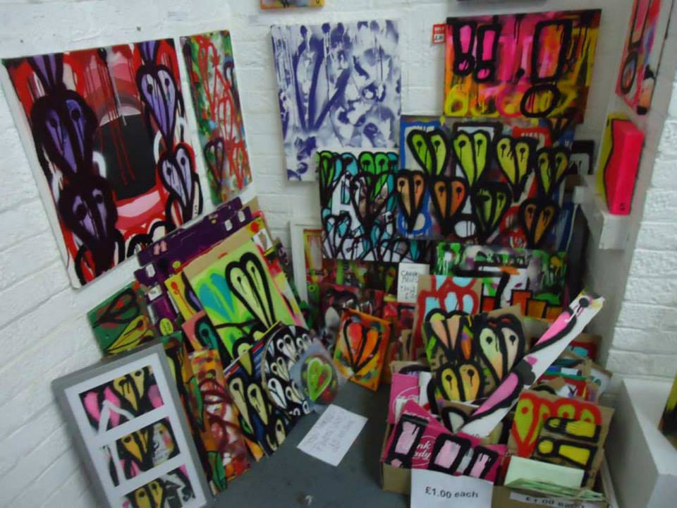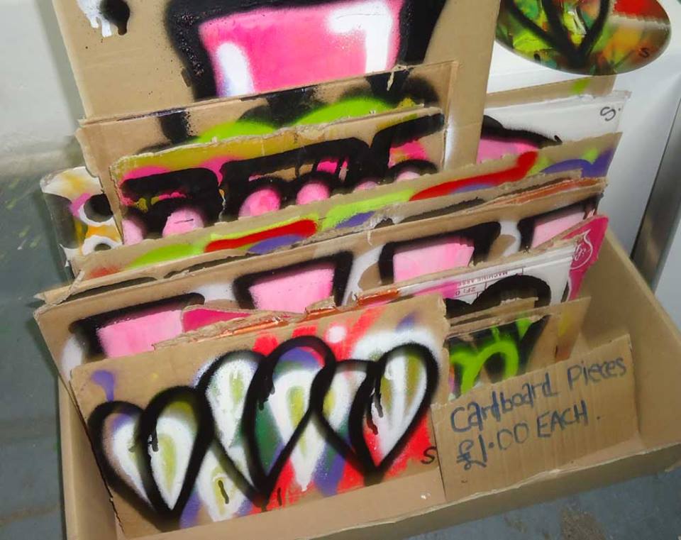 Pieces on recycled cardboard found in the street, Vyner Street, quick pieces created n the gallery, for sales at Cultivate for £1 each or maybe left back out on the street as free art, Similar pieces are left out most days… July 2013 (all sold)