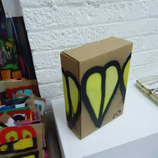 Nov 2013 – painted cardboard, ready for Free Art Friday – London or the £1 box at Cultivate, Vyner Street – art for everyone
