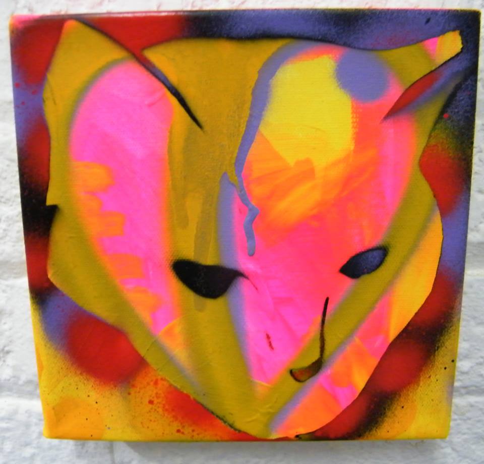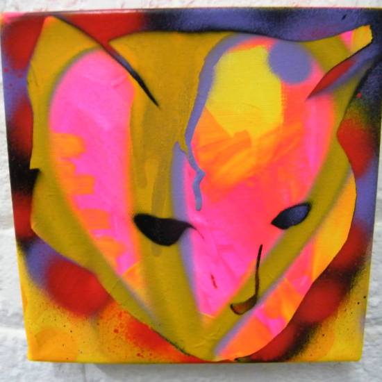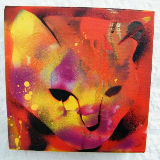 CAT No7 – acrylic, spray paint on deep edge canvas, 20cm x 20cm (sold)