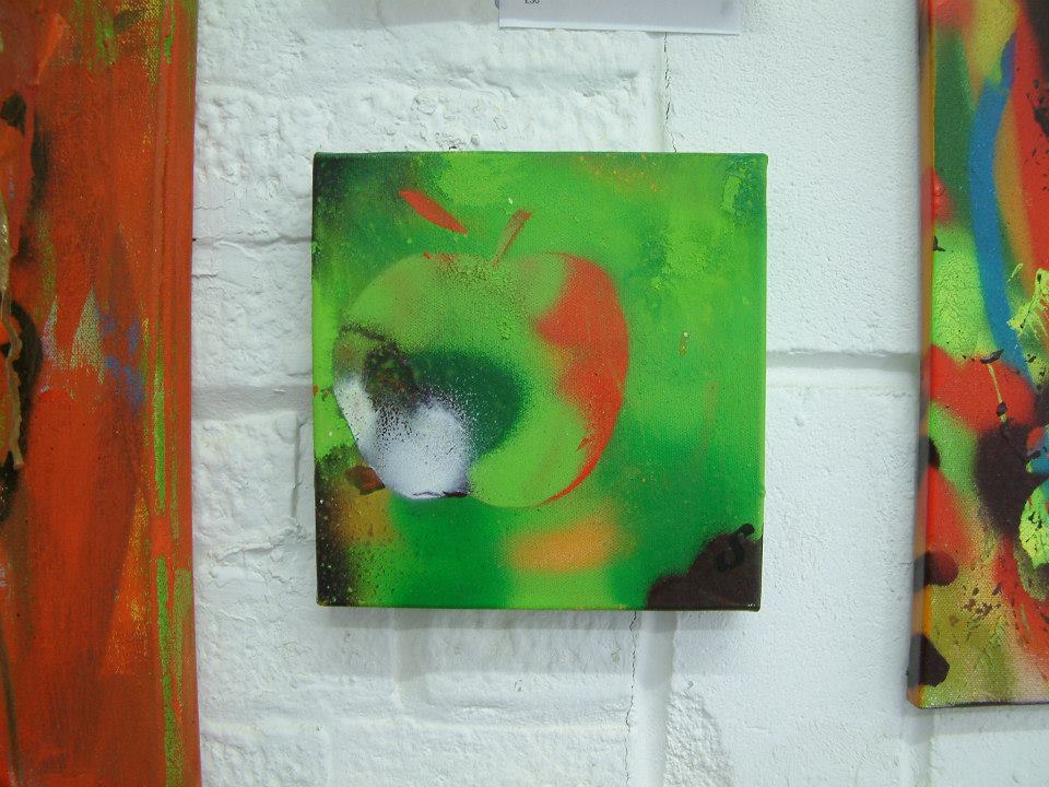 An apple, spray paint on canvas – 20cm x 20cm (sold)