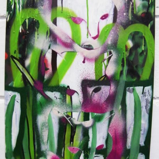 GROWTH – Dec 4th 2013 – spray paint and acrylic on a found piece of hardboard
