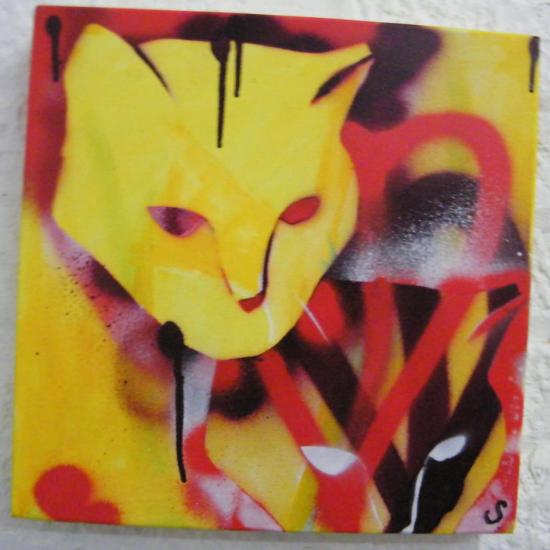 CAT, A YELLOW ONE – Acrylic on deep edge canvas 20cm x 20cm, July 2013 (sold)