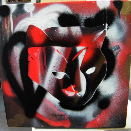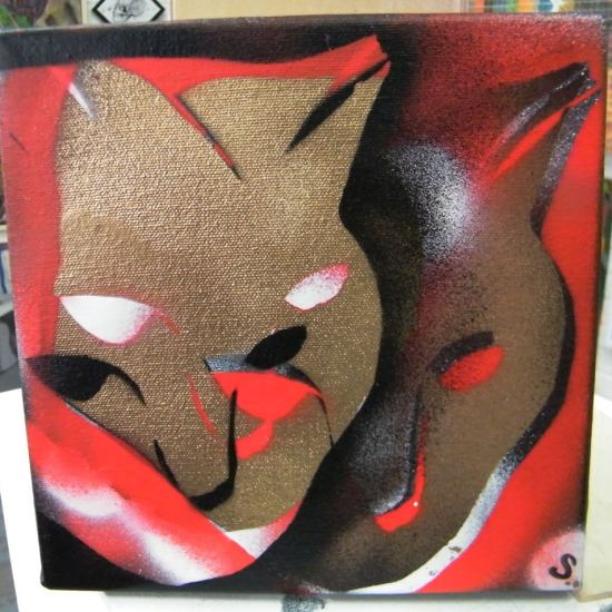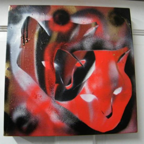 CAT, RED ONE (2013) ACRYLIC, SPRAY PAINT, DEEP EDGE CANVAS, 25cm X 25cm