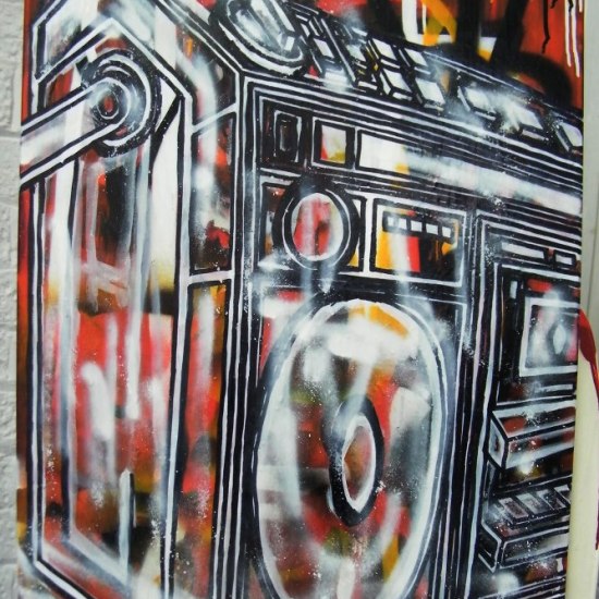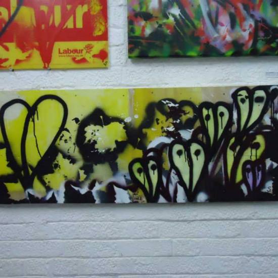 Two canvases painted live at the Apple Cart Festival, Victoria Park, London, 2012