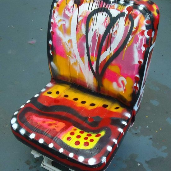 TAXI SEAT, Sept 2013. A seat rescued from the taxi garage up the road, painted in the gallery. (sold)