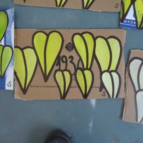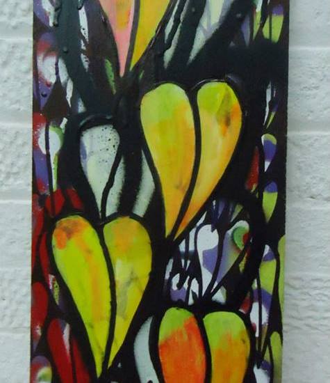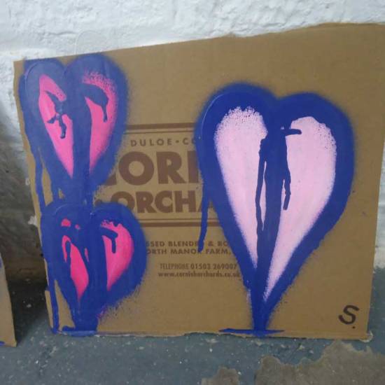 FEB 7th – Cornish orchard. Piece of cardboard picked up outside LimeWharf in the morning, painted on, and sold that evening….waist is evil… Sold to your man Shem there (he came in rapping, he left with some art)