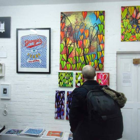 […] pub, over the road… at some point I may paint a cheese roll or a bag of crisps. All my recent 2014 canvas pieces will be on sale for just £10 for the one day only, vinyl will also be vinyl being painted on all […]