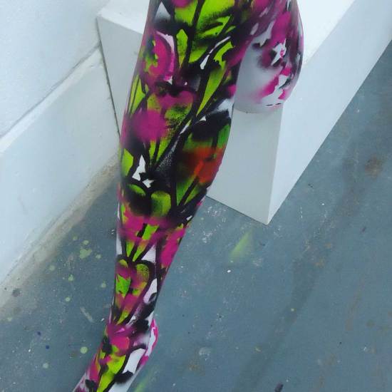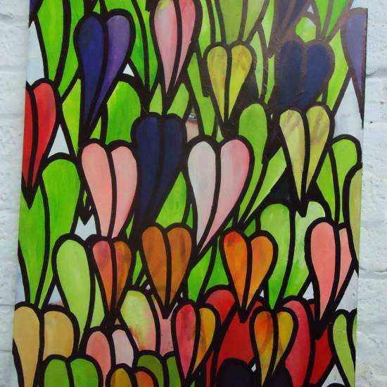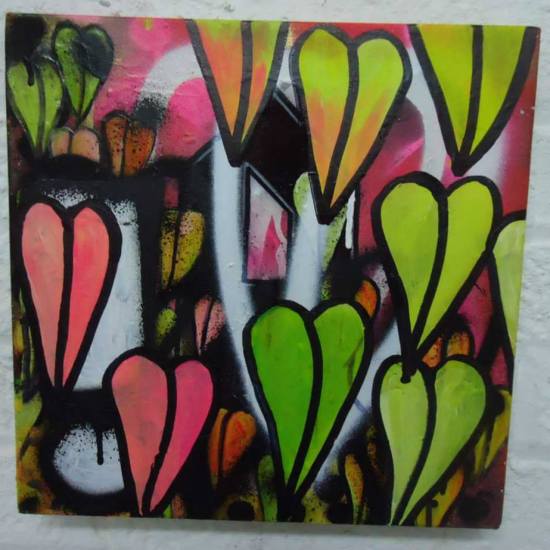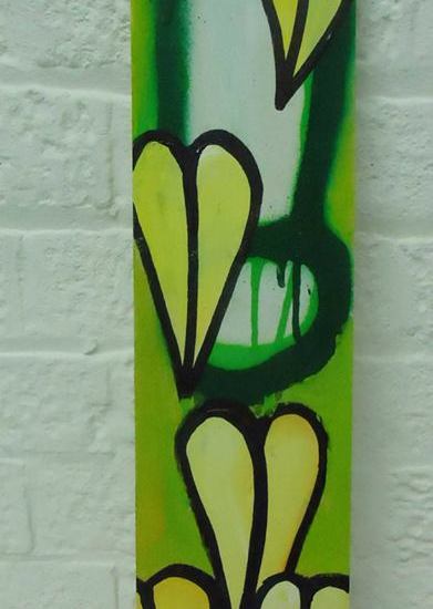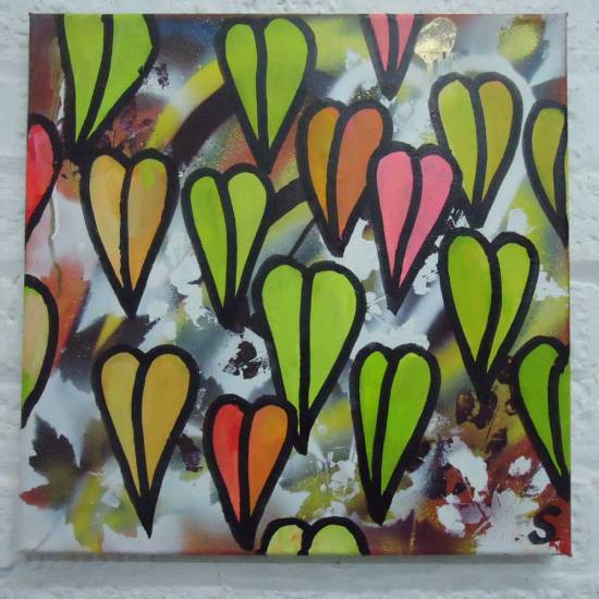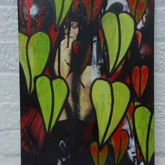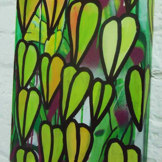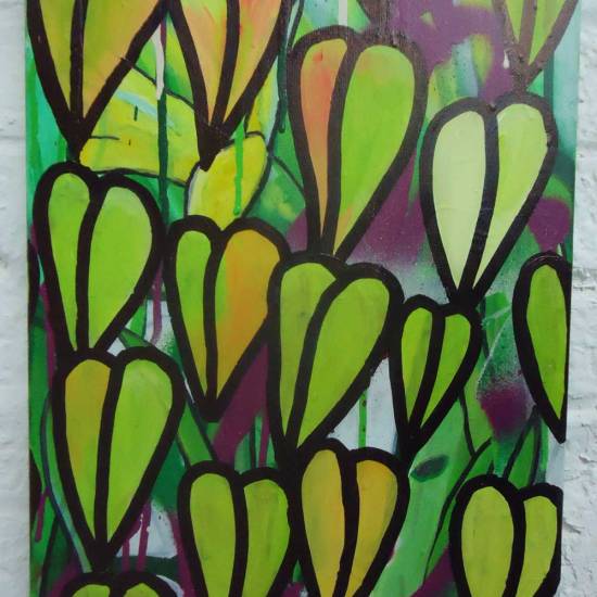 Jan 18th – New layers, new leaf growth on an Emma Harvey mouth Acrylic, spray paint, marker pen on canvas (40cm x 40cm)