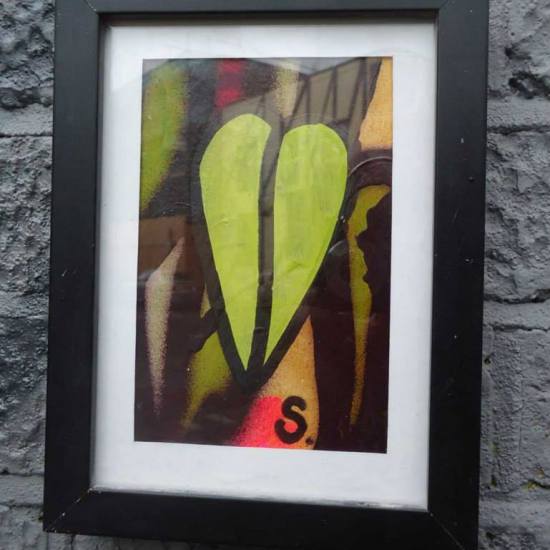 Jan 23rd 2014 – A Leaf, acrylic, spraypaint, marker pen on art paper – 15cm x 10cm (inc frame)
