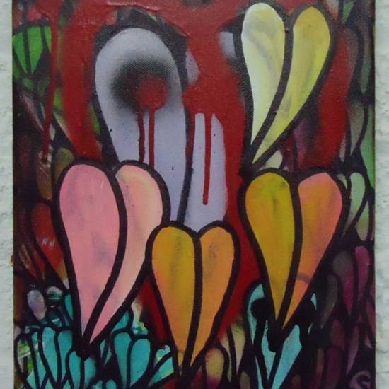 Jan 18th – New layers… on a collaboration with Emma Harvey Acrylic, spray paint, marker pen on a canvas (30cm x 40cm)