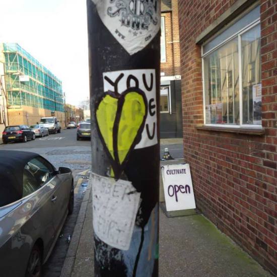 JULY 2013 – A Leafheart painted on the wall of the Southbank Undercroft, London