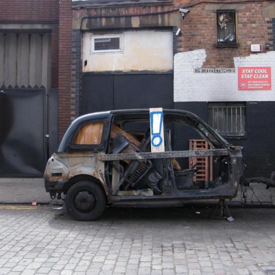 APRIL 28th 2013 – exclaiming on a piece of found wood, left on a taxi while Big Bruva watches. East London