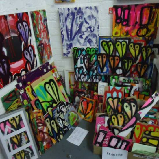 June 4th – Work in progress, 100 £1 PAINTINGS FOR THE 2013 BRICK LANE ART CAR BOOT FAIR (the fair happened on 9th June)