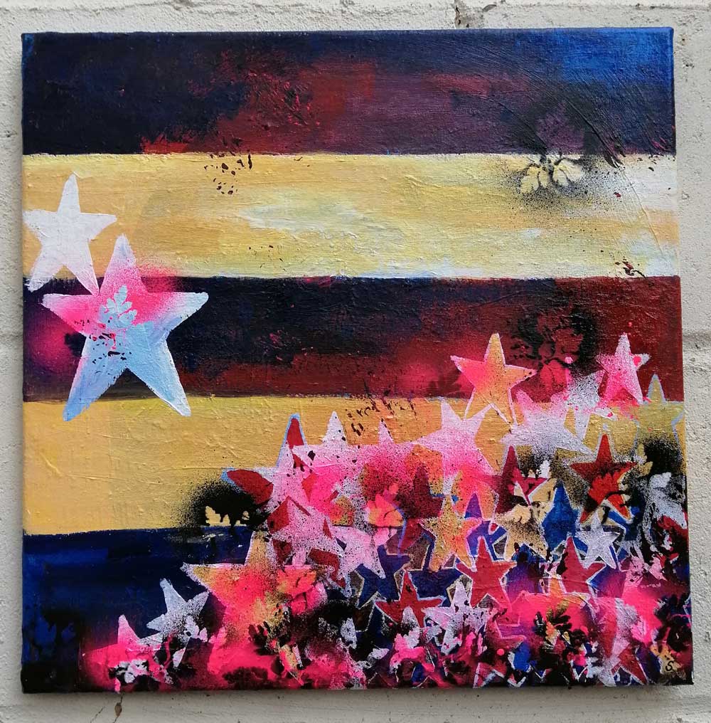 “Stripes No.34 (Broke)” – Acrylic on canvas, 15x15x1cm (Feb 2025) “Stripes No.33 (whole)” – Acrylic on canvas, 24x30x1cm (September 2024) “Stripes No.32 (Upside Down?)” – Acrylic on recycled cardboard, 35x35cm, 19th July 2024“Stripes No.31 (Down)” -: Acrylic on canvas, 25x30x1cm, 19th July 2024 “Stripes No.30 (Guilty)”. Acrylic on canvas, 20x20x1cm (1st June 2024)“Stripes No.29 (Repeat After Me…)” – Acrylic on canvas, 30x30cm“Stripes No.28 (Fries To Go.,. ). – Acrylic on canvas, 30x30cm (S“Stripes No.27 (Above Us Only Sky)” – Acrylic on canvas, 30x30x1cm, September 2023“Stripes No 26 ( Pop Will Eat Itself)” – Acrylic on canvas, 20x20x1cm (September 2023)“Stripes No 25 (Pop) – Acrylic on canvas, 20x20cm ( August 2023)Untitled (Stars and Stripes No26) – Acrylic on canvas 20x20x1cm (November 2021)Untitled (Stars and Stripes No25) – Acrylic on canvas 30x30x1cm (November 2021)“Untitled – Stripes No24”- (February 2021) – Acrylic on canvas, 20cm x 20cm x 1cm“Untitled – Stripes No.23” – 16th January 2021. Acrylic on canvas, 20cm x 20cm x 1cm“Untitled – Stripes No22” Acylic on canvas, 20cm x 20cm x 1cm, 14th December 2020 (the night Trump was officially dumped)“Untitled – Stripes No21” Acylic on canvas, 20cm x 20cm x 1cm, 14th December 2020 (the night Trump was officially dumped)“Ten:155 (Voting)” – 13th December 2020 – Acrylic on canvas, 10cm x 10cm x 1cm – sold“Ten:154 (All In)” – 12th December 2020 – Acrylic on canvas, 10cm x 10cm x 1cm – sold“Ten:134 (Eighteen)” – 22nd November 2020 – Acrylic on canvas, 10cm x 10cm x 1cm – Sold“Untitled – Stripes No16” (8th November 2020) – Acrylic on found recycled canvas, 45x65cm “Untitled – Stripes No15” (November 2020) – Acrylic, gloss varnish on canvas, 20cm x 20cm x 1cm*Untitled – Stripes No14″ (October 2020) – Acrylic on canvas, 20cm x 20cm x 1cm*Untitled – Stripes No13″ (October 2020) – Acrylic on canvas, 20cm x 20cm x 1cm“Ten:92 (Never Ever)” – 11th October 2020 – Acrylic on canvas, 10cm x 10cm x 1cm – Sold “Fringements Stripes No. 12” (October 2020) – Acrylic on canvas, 20cm x 20cm“Untitled – Stripes No10” (Sept 2020) – Acrylic on found recycled canvas, 40cm x 40cm “Untitled, Stripes No. 9” – (September 2020) – Acrylic on canvas, 13cm x 13cm“Untitled, Stripes No. 8” – (September 2020) – Acrylic on canvas, 20cm x 20cm x 1cm“Stripes – No.7” (Sept 2020) Acrylic on canvas, 20cm x 20cm“Untitled, Stripes No. 6” – (September 2020) – Acrylic on canvas, 60cm x 60cm x 4cm“Untitled, Stripes No. 6” – (September 2020) – Acrylic on canvas, 60cm x 60cm x 4cm“Untitled, Stripes No. 6” – (September 2020) – Acrylic on canvas, 60cm x 60cm x 4cm“Untitled, Stripes No. 6” – (September 2020) – Acrylic on canvas, 60cm x 60cm x 4cm“Untitled, Stripes No. 5” (September 2020) Acrylic on canvas, 20cm x 20cmStripes (and stars), 2020“Untitled, Stripes No. 3/4” – ( September 2020) – Acrylic on canvas, 20cm x 20cm“Ten:68 (Should Not Say)” – 17th Sept 2020, – Acrylic on canvas, 10cm x 10cm x 1cm – SOLD“Ten:66 (Sleep?)” – 15th Sept 2020, – Acrylic on canvas, 10cm x 10cm x 1cm – Sold“Ten:65 (Though)” – 14th Sept 2020, – Acrylic on canvas, 10cm x 10cm x 1cm – SOLD“Ten:64 (Report)” – 13th Sept 2020, – Acrylic on canvas, 10cm x 10cm x 1cm – Sold“Untitled, Stripes No. 4” – ( September 2020) – Acrylic on canvas, 20cm x 20cm“Untitled Stripes No. 3′ (August 2020) Acrylic on canvas, 20cm x 20cmToday at the studio, new paintings, Stripes, paint, layers…“Any Questions?” (Sept 2020) Acrylic on canvas, 20cm x 50cm. “Paint” (Sept 2020) – Acrylic on deep edge canvas, 30cm x 30cm x 4cm. Today at the studio, new paintings, Stripes, paint, layers…Today at the studio, new paintings, Stripes, paint, layers…“Another Petunia – Stripes No.2” (August 2021) – Acrylic on canvas, 20cm x 20cm x 1cm.Sean Worrall “What Gives” – Acrylic on Canvas, 20cm x 20cn x 1cm“Yet Another Petunia – Stripes No.1” ( August 2021) – Acrylic on canvas, 20cm x 20cm x 1cmSean Worrall “Who Gives” – Acrylic on Canvas, 20cm x 20cn x 1cm