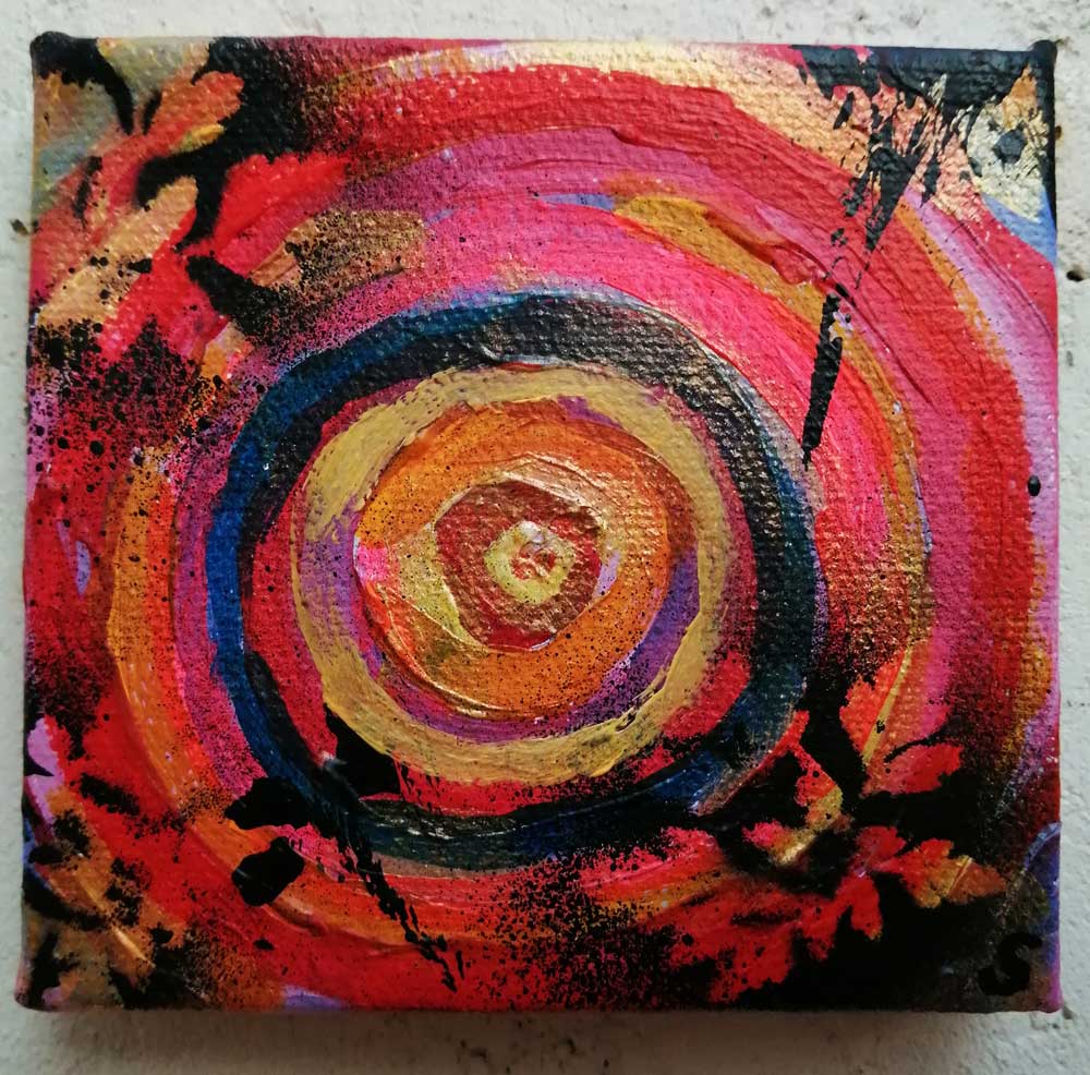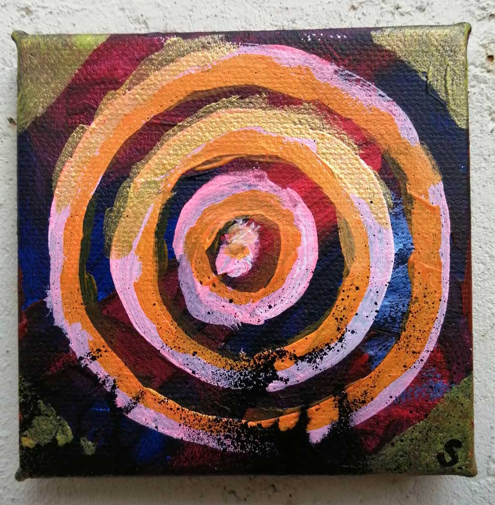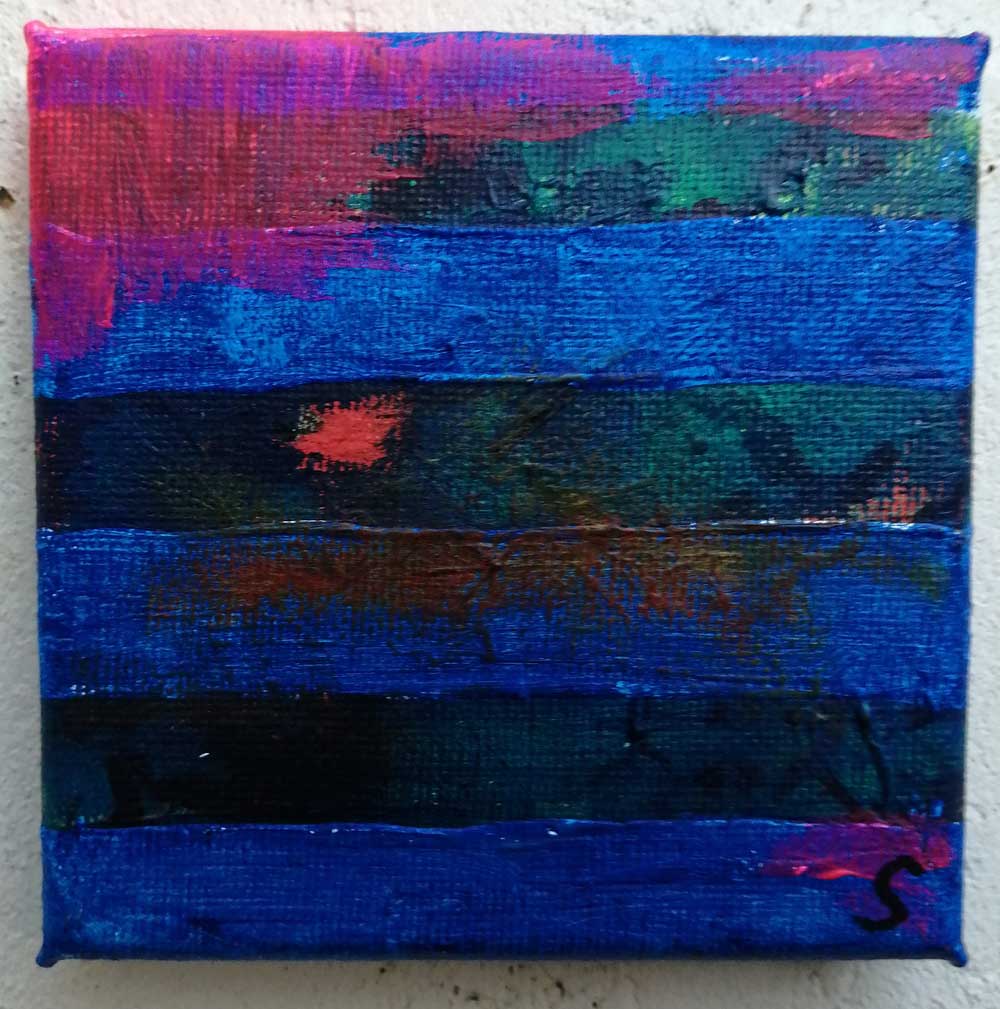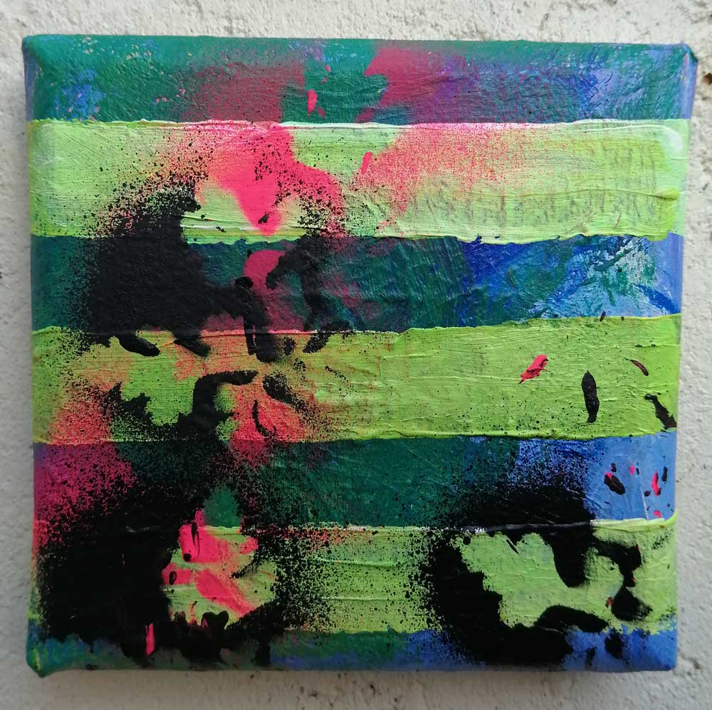 A series of what eventually became 1000 daily concluded paintings, a painting finished every single day, not started and finsihed, just one a day concluded, there are always a number in progress at any give ntime here inthe studio, always on a 10cm x 10cm x 1cm canvas. The daily series started in July 2020, who knows how long it will go on for? Welll the answer was for a thousand days (stop press, no, it carried on…). Always on a 10cm square canvas, always offered for sale at a price of £10, always Ten. The Ten paintings are generally available via the Cultivate shop or do ask, always good to ask. Everything that isn’t maked “sold” is still for sale, if it isn’t in the shop, do please ask.