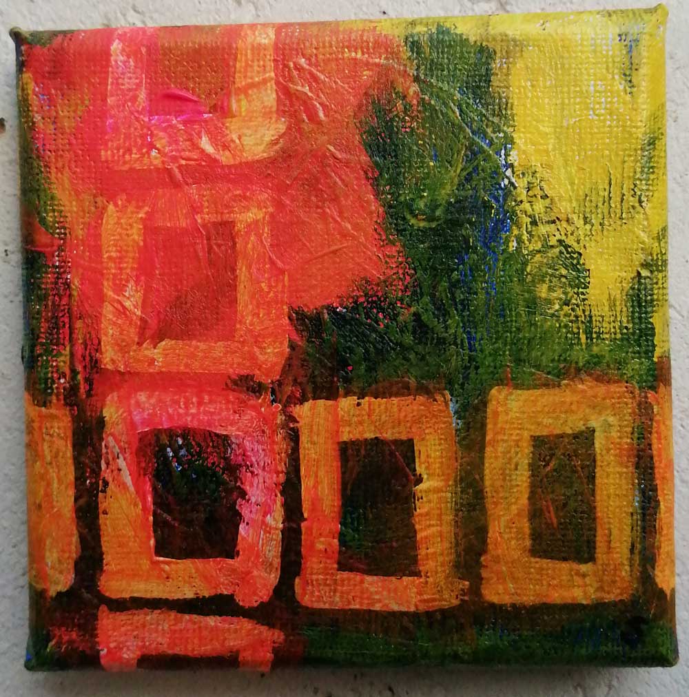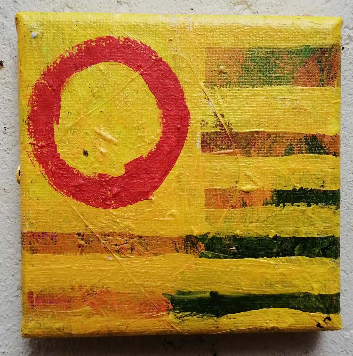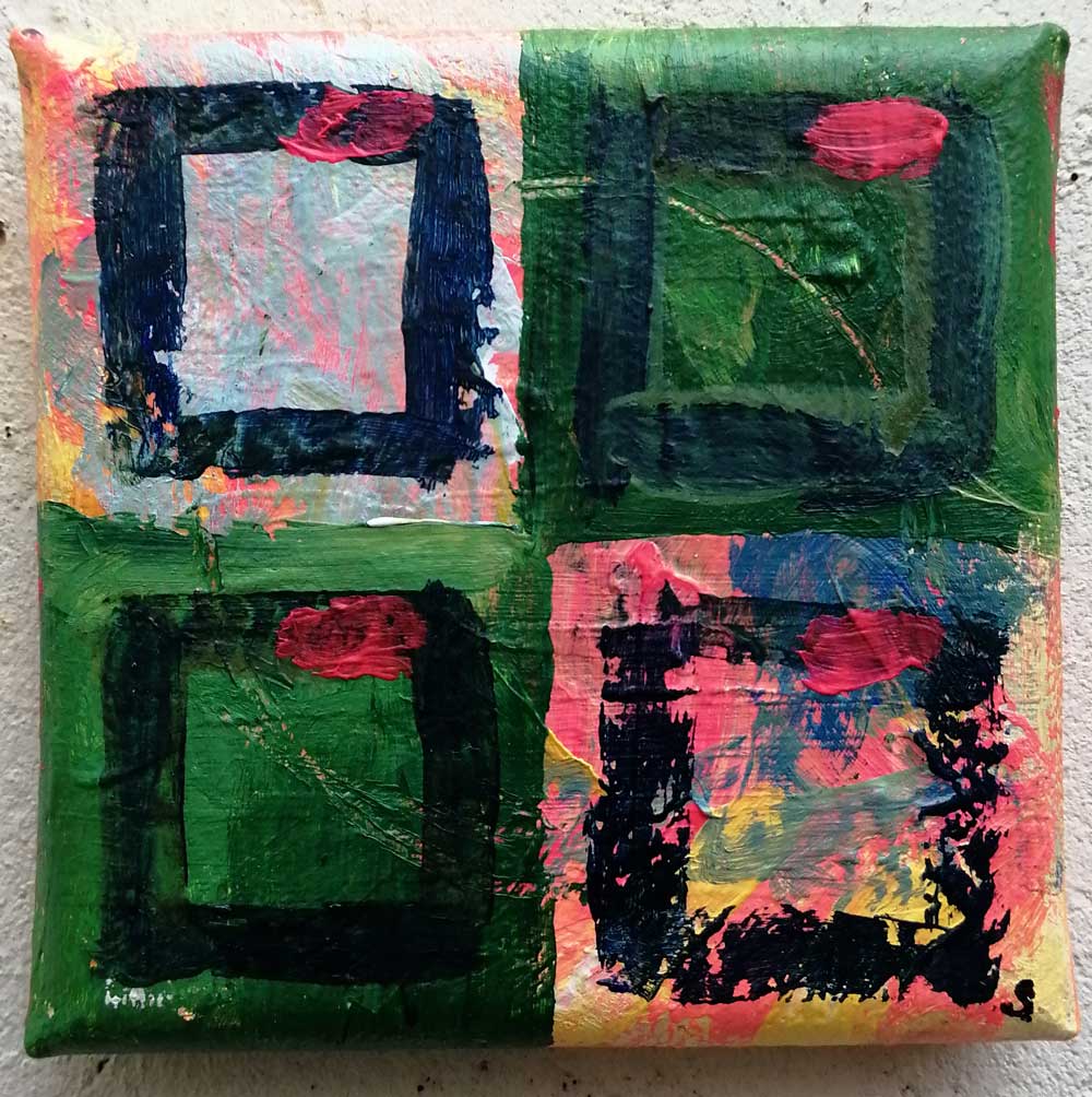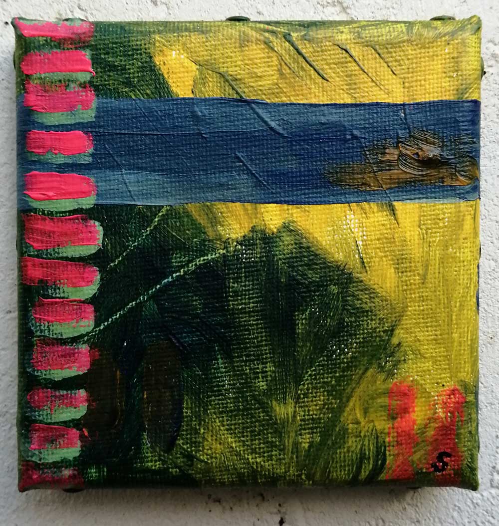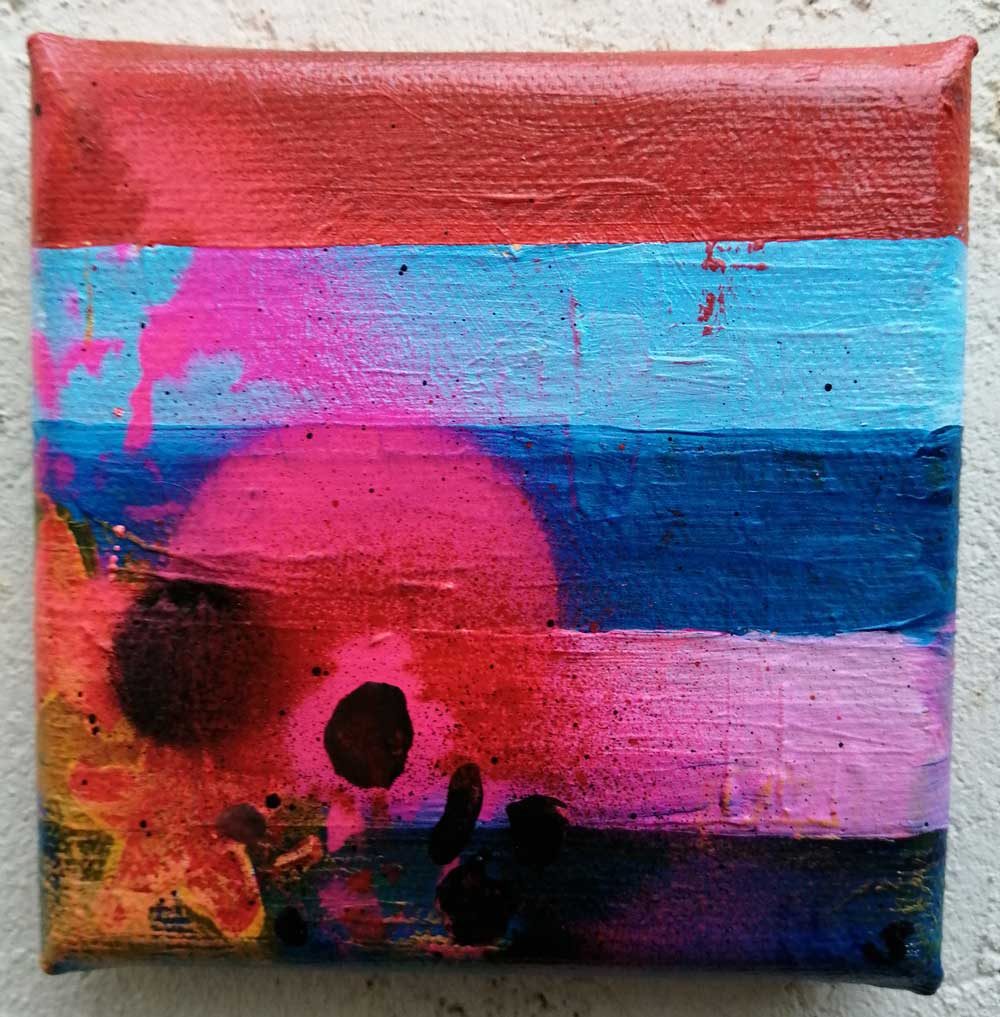 An ongoing series of daily concluded paintings, a painting finished every single day, not started and finsihed, just one a day concluded, there are always a number in progress at any give ntime here in the studio, always on a 10cm x 10cm x 1cm canvas. The daily series started in July 2020, who knows how long it will go on for? Always on a 10cm square canvas, always offered for sale at a price of £10, always Ten. The Ten paintings are generally available via the Cultivate shop or do ask, always good to ask.