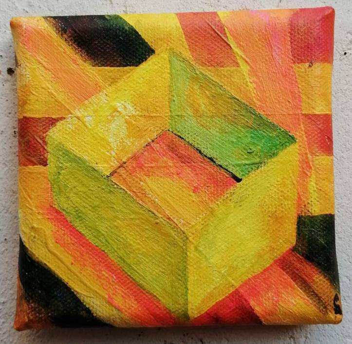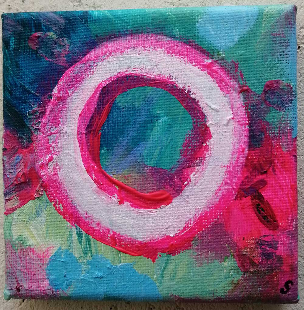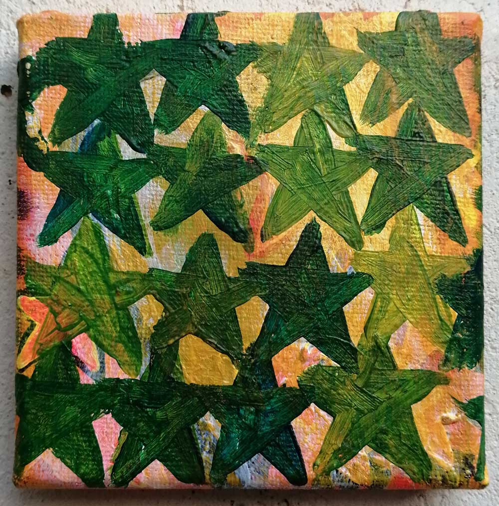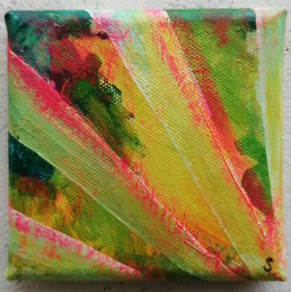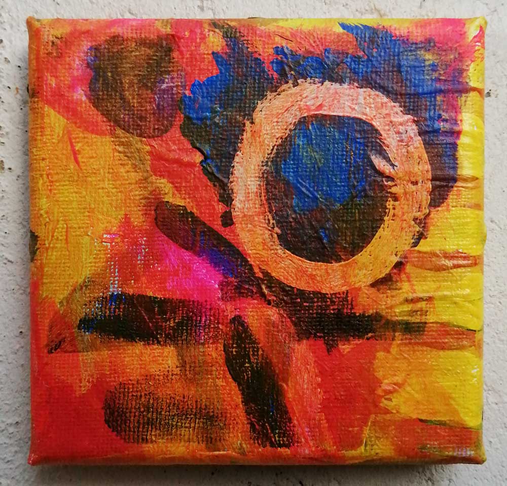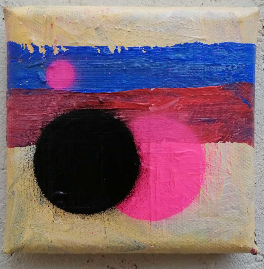 An ongoing series of daily concluded paintings, a painting finished every single day, not started and finsihed, just one a day concluded, there are always a number in progress at any give ntime here in the studio, always on a 10cm x 10cm x 1cm canvas. The daily series started in July 2020, who knows how long it will go on for? Always on a 10cm square canvas, always offered for sale at a price of £10, always Ten. The Ten paintings are generally available via the Cultivate shop or do ask, always good to ask.
