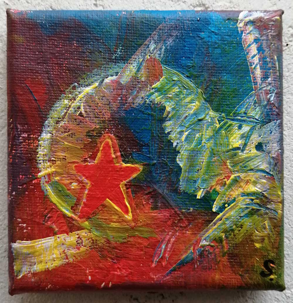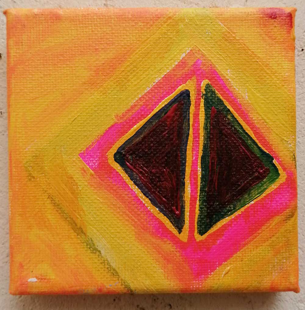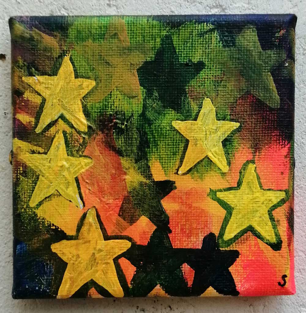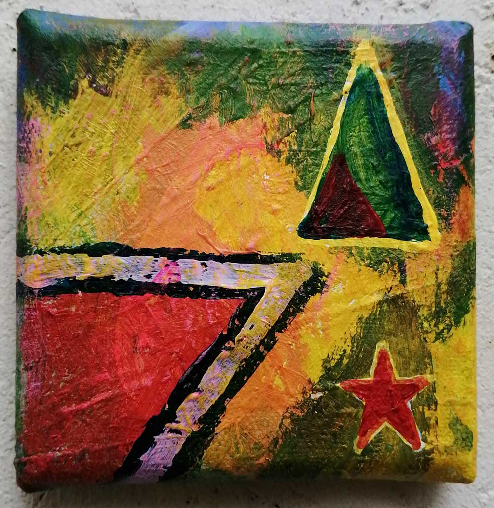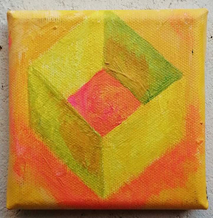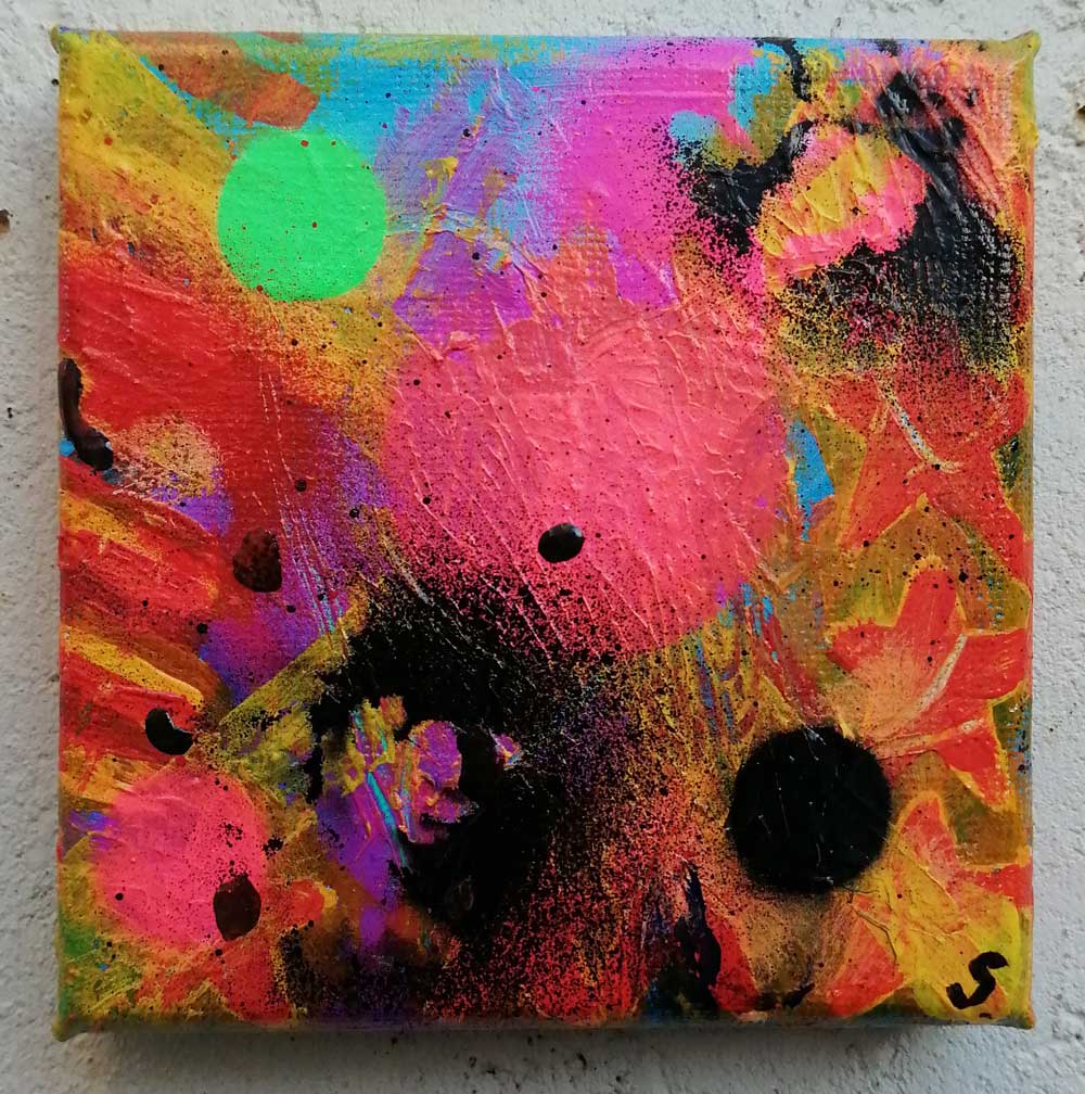 An ongoing series of daily concluded paintings, a painting finished every single day, not started and finsihed, just one a day concluded, there are always a number in progress at any give ntime here in the studio, always on a 10cm x 10cm x 1cm canvas. The daily series started in July 2020, who knows how long it will go on for? Always on a 10cm square canvas, always offered for sale at a price of £10, always Ten. The Ten paintings are generally available via the Cultivate shop or do ask, always good to ask.