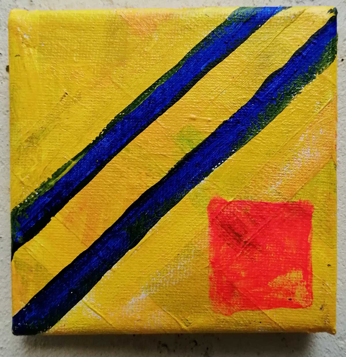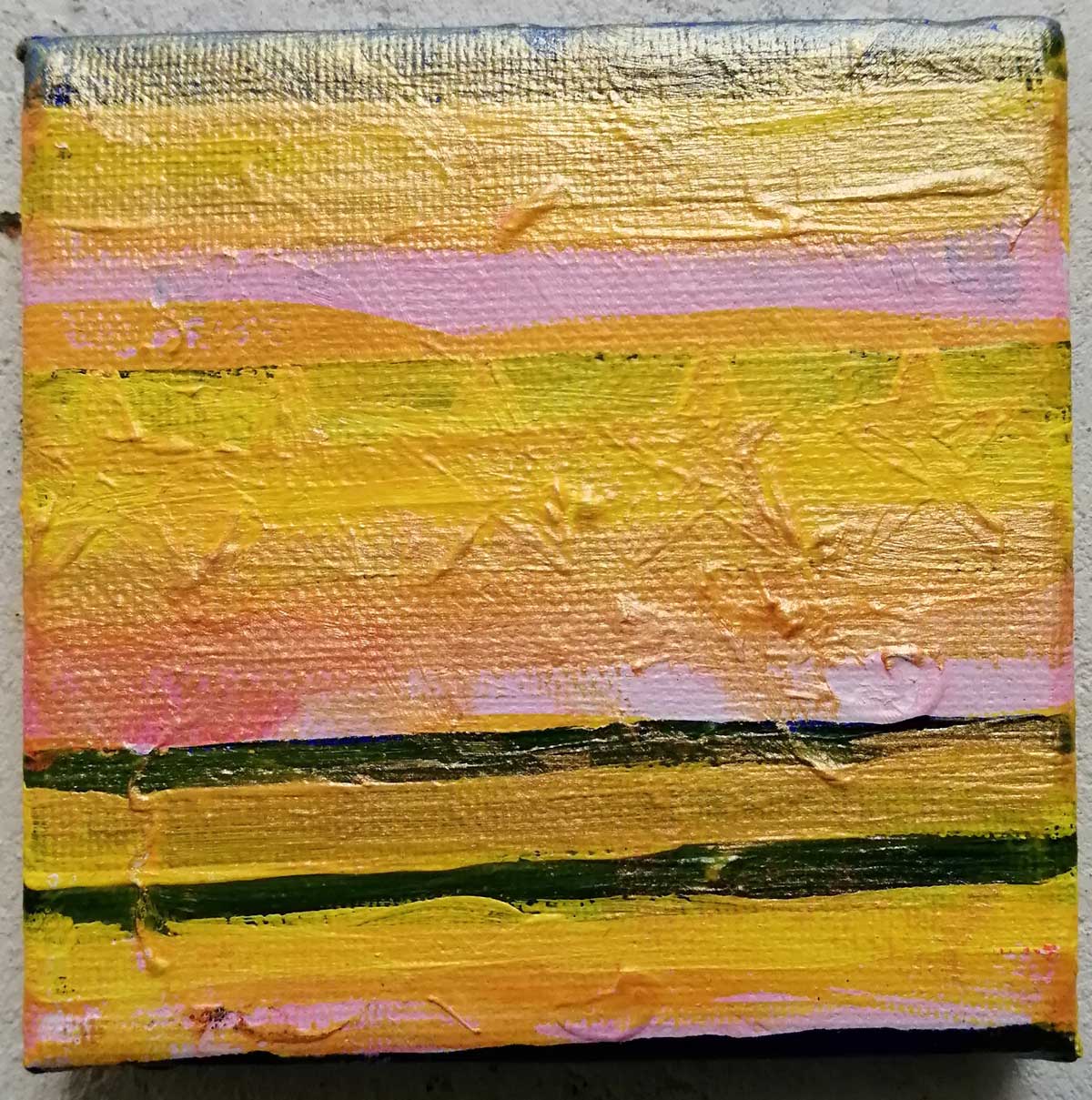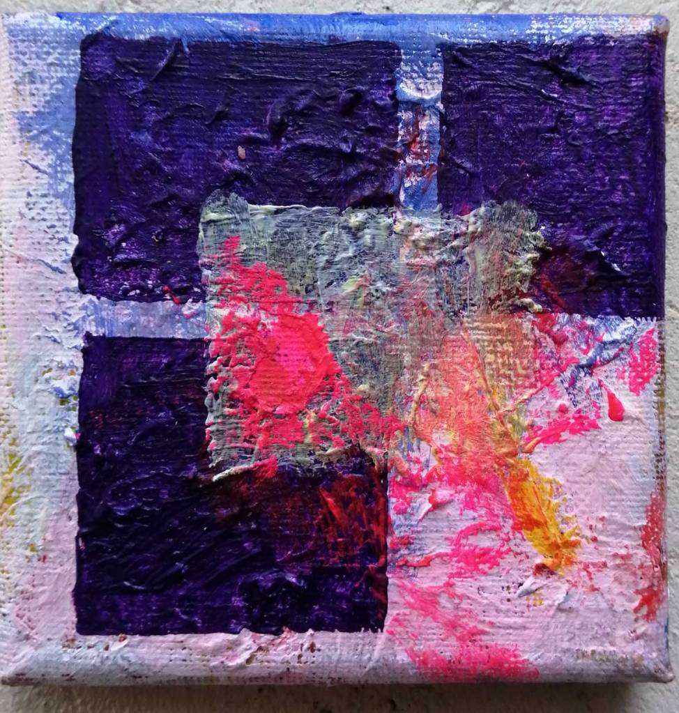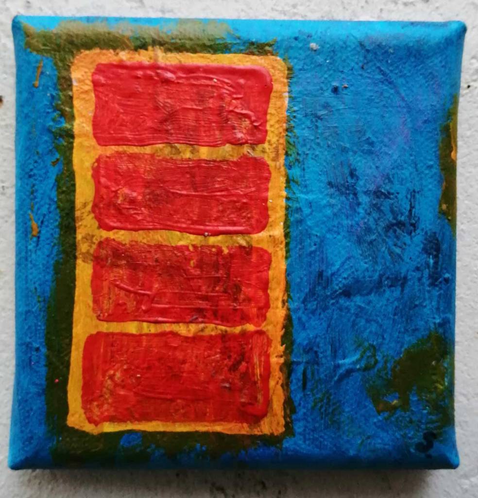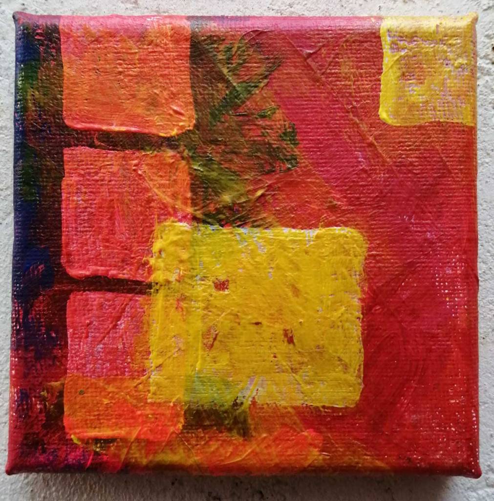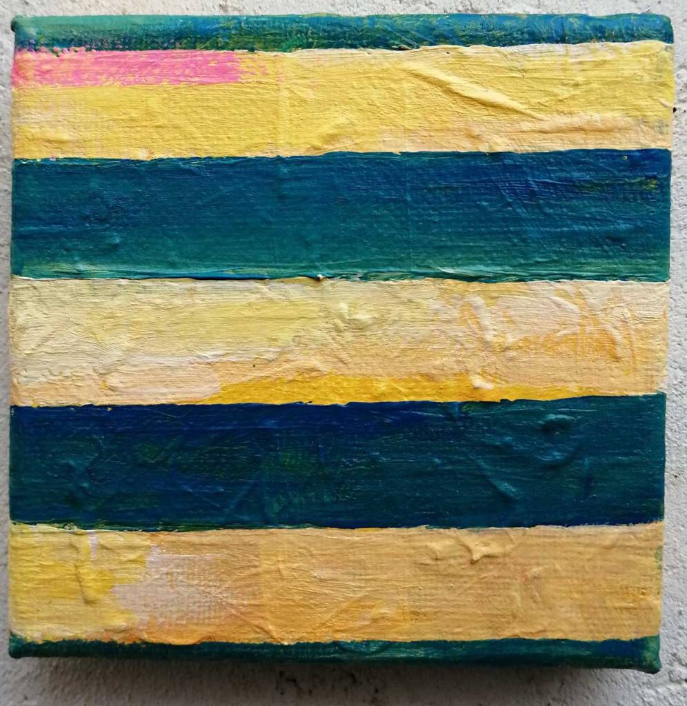 An ongoing series of daily concluded paintings, a painting finished every single day, not started and finsihed, just one a day concluded, there are always a number in progress at any give ntime here in the studio, always on a 10cm x 10cm x 1cm canvas. The daily series started in July 2020, who knows how long it will go on for? Always on a 10cm square canvas, always offered for sale at a price of £10, always Ten. The Ten paintings are generally available via the Cultivate shop or do ask, always good to ask (if it isn’t marked “sold” it is still for sale, ask me)
