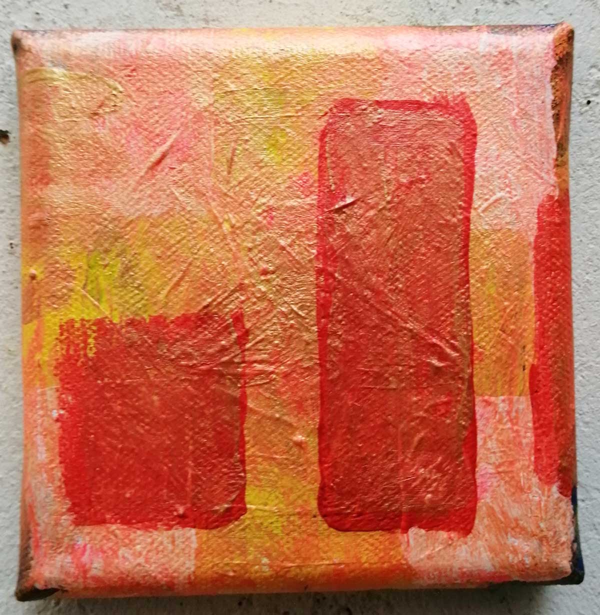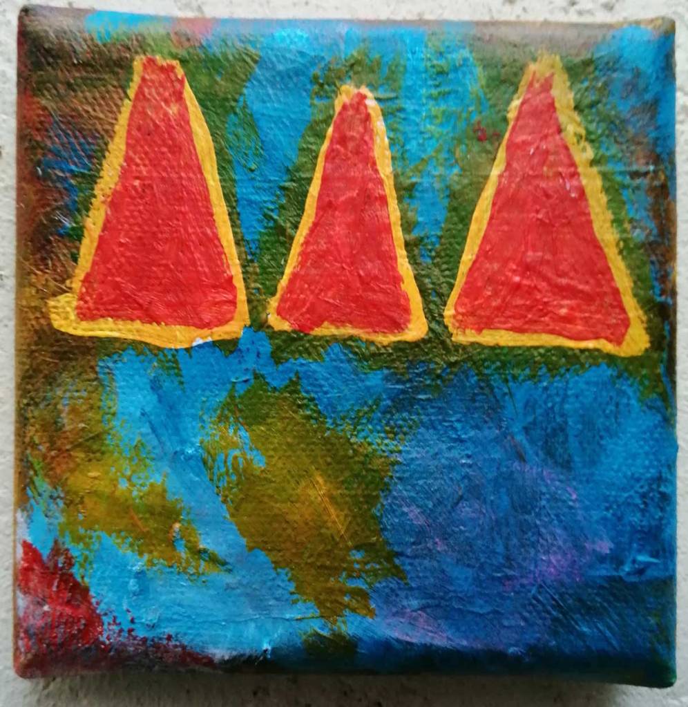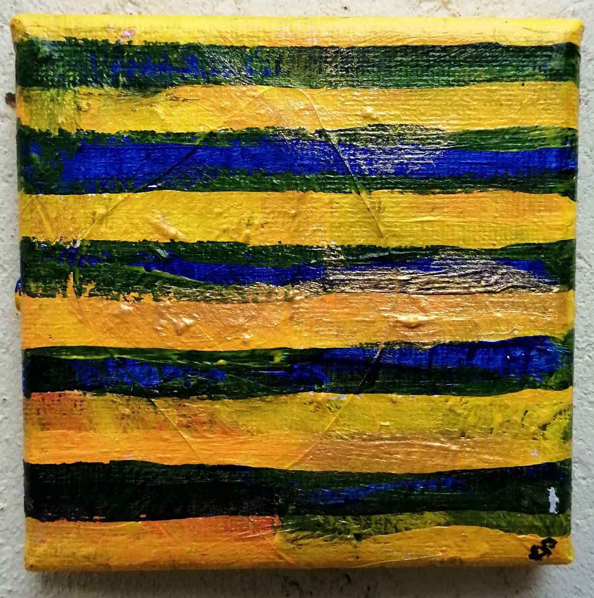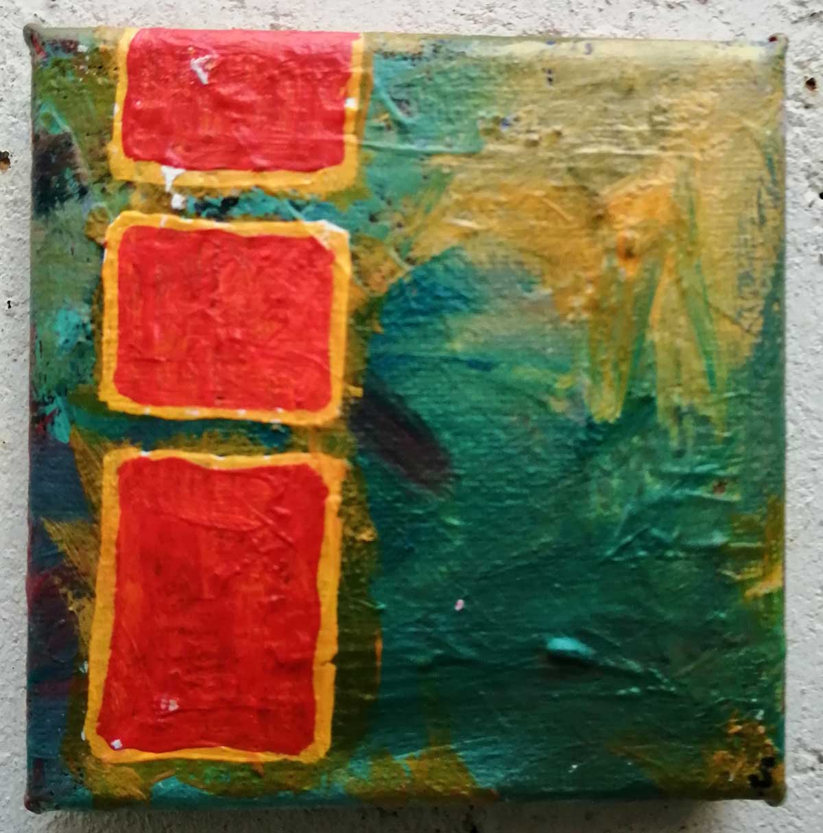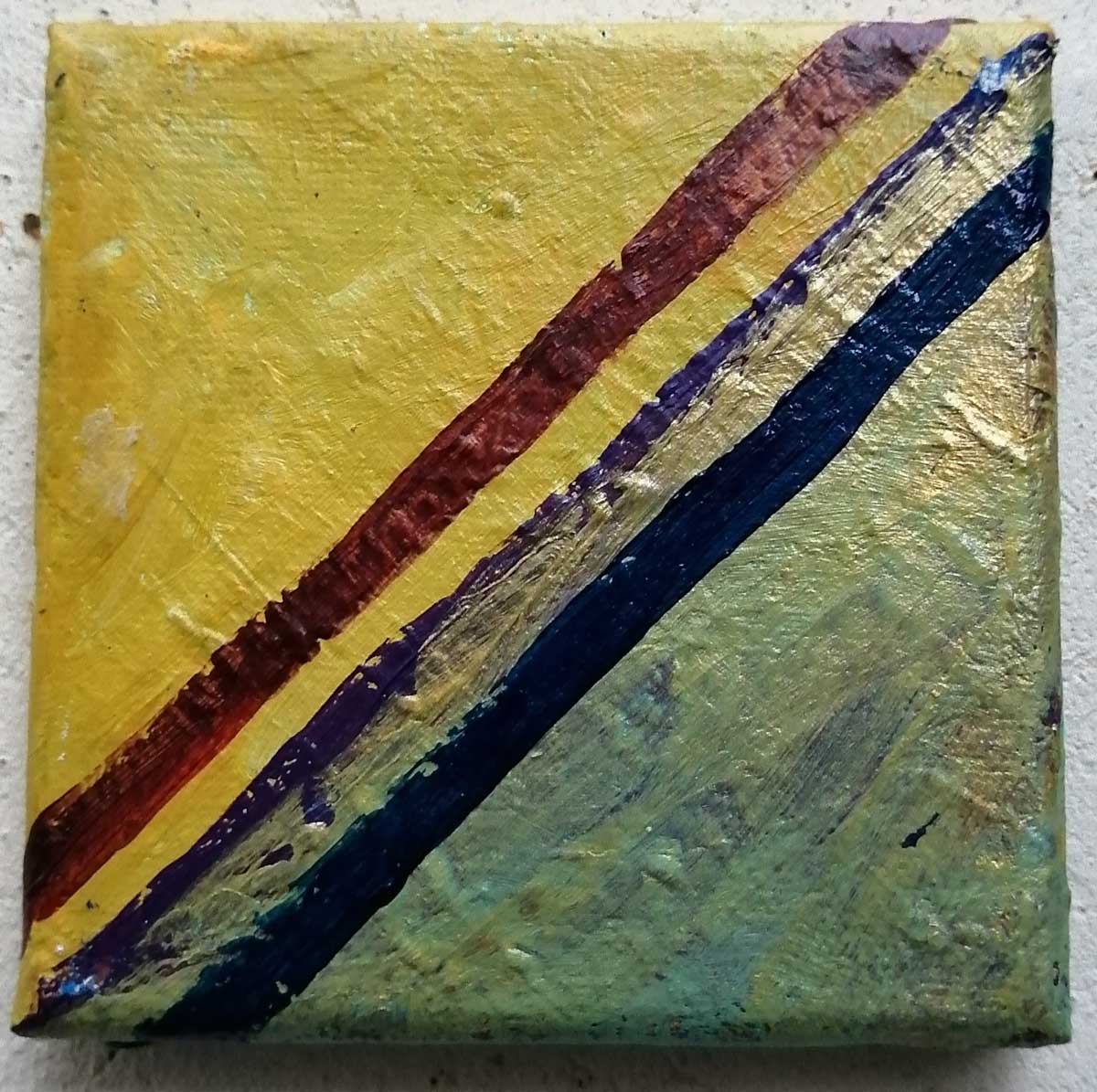 An ongoing series of daily concluded paintings, a painting finished every single day, not started and finsihed, just one a day concluded, there are always a number in progress at any give ntime here in the studio, always on a 10cm x 10cm x 1cm canvas. The daily series started in July 2020, who knows how long it will go on for? Always on a 10cm square canvas, always offered for sale at a price of £10, always Ten. The Ten paintings are generally available via the Cultivate shop or do ask, always good to ask (if it isn’t marked “sold” it is still for sale, ask me)