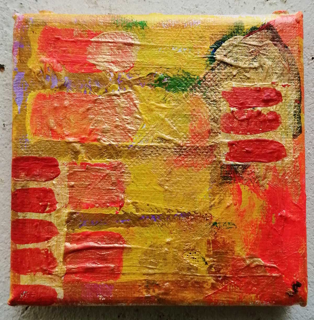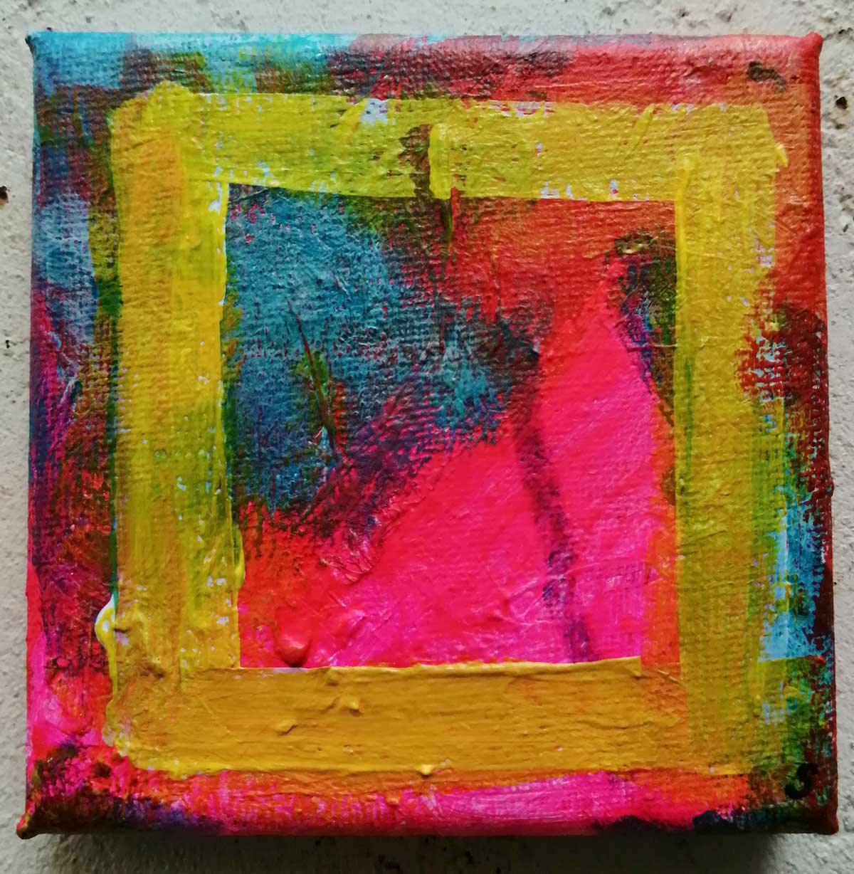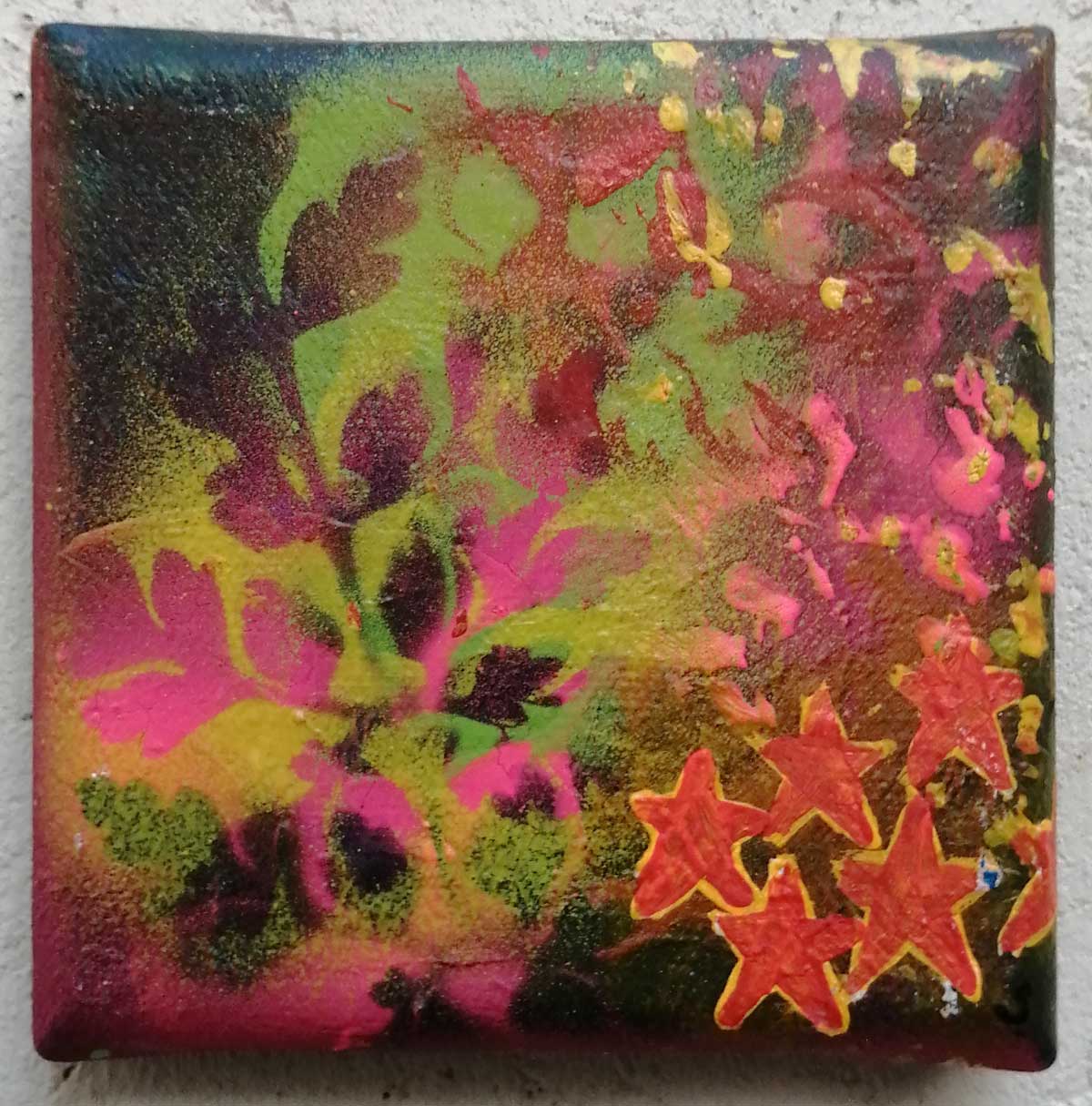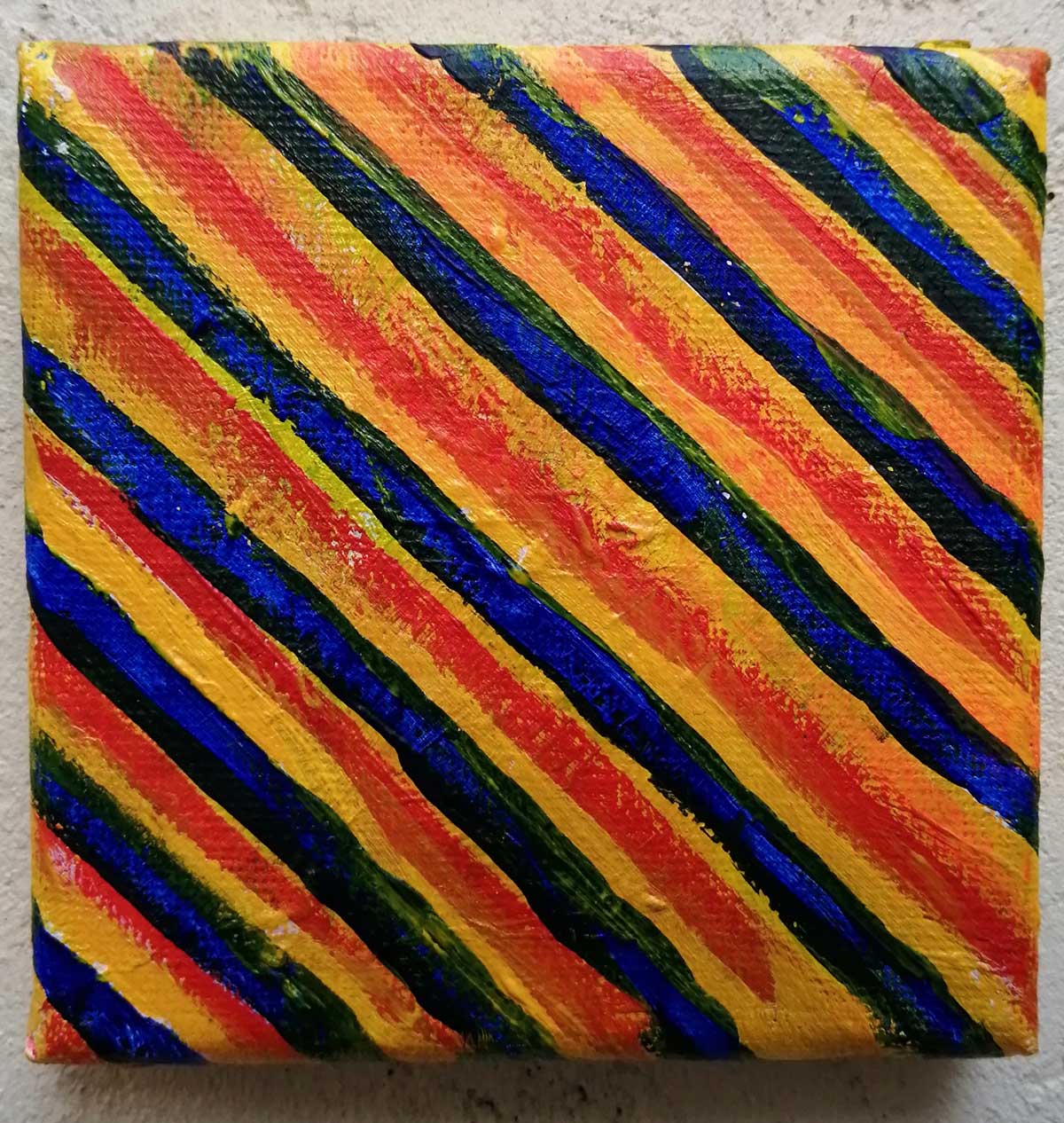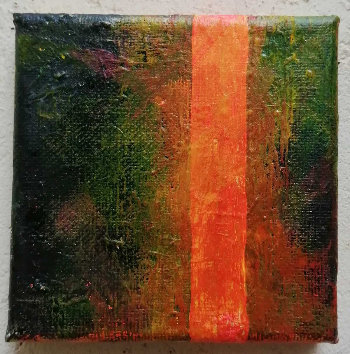 An ongoing series of daily concluded paintings, a painting finished every single day, not started and finsihed, just one a day concluded, there are always a number in progress at any give ntime here in the studio, always on a 10cm x 10cm x 1cm canvas. The daily series started in July 2020, who knows how long it will go on for? Always on a 10cm square canvas, always offered for sale at a price of £10, always Ten. The Ten paintings are generally available via the Cultivate shop or do ask, always good to ask (if it isn’t marked “sold” it is still for sale, ask me)