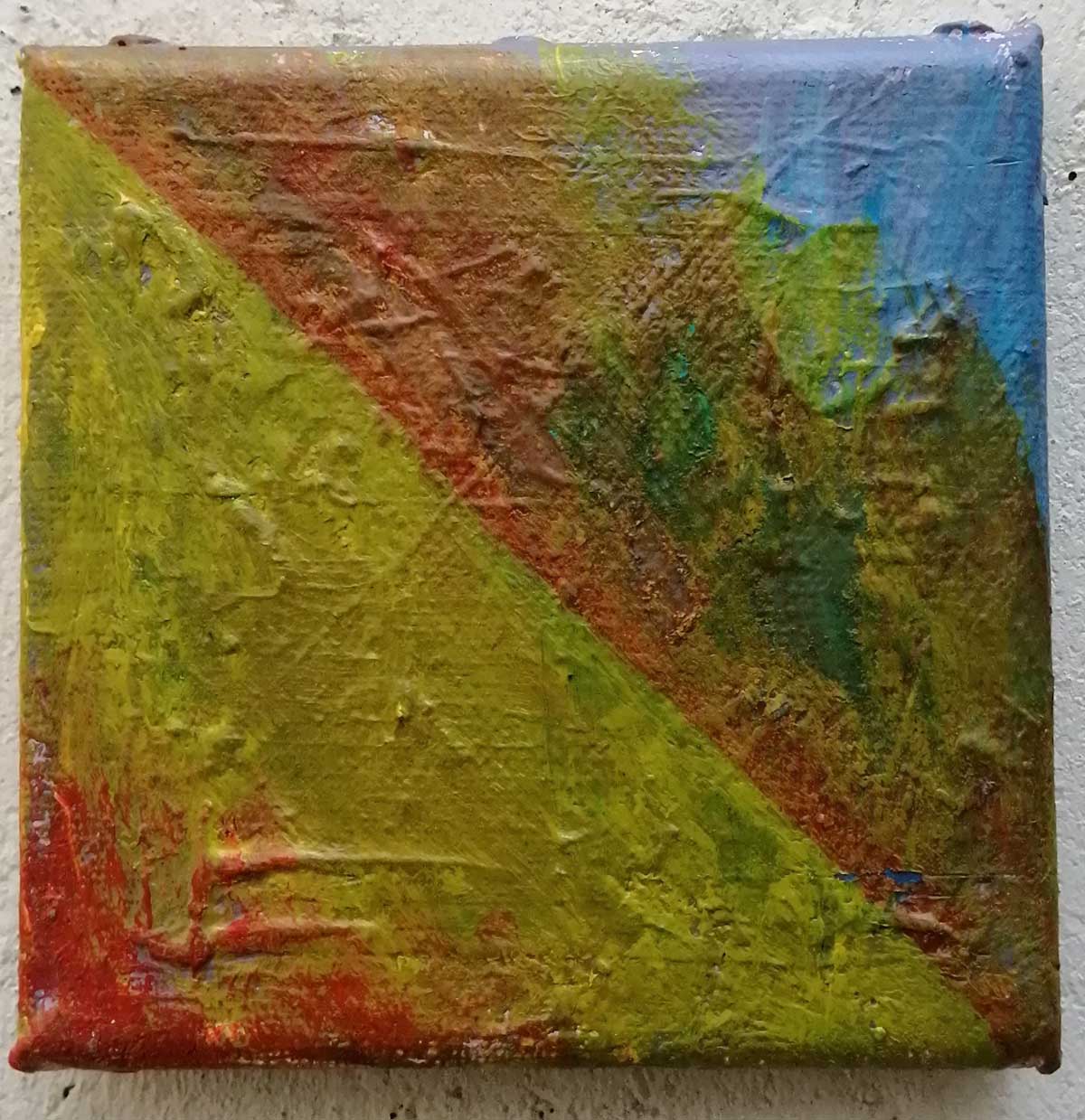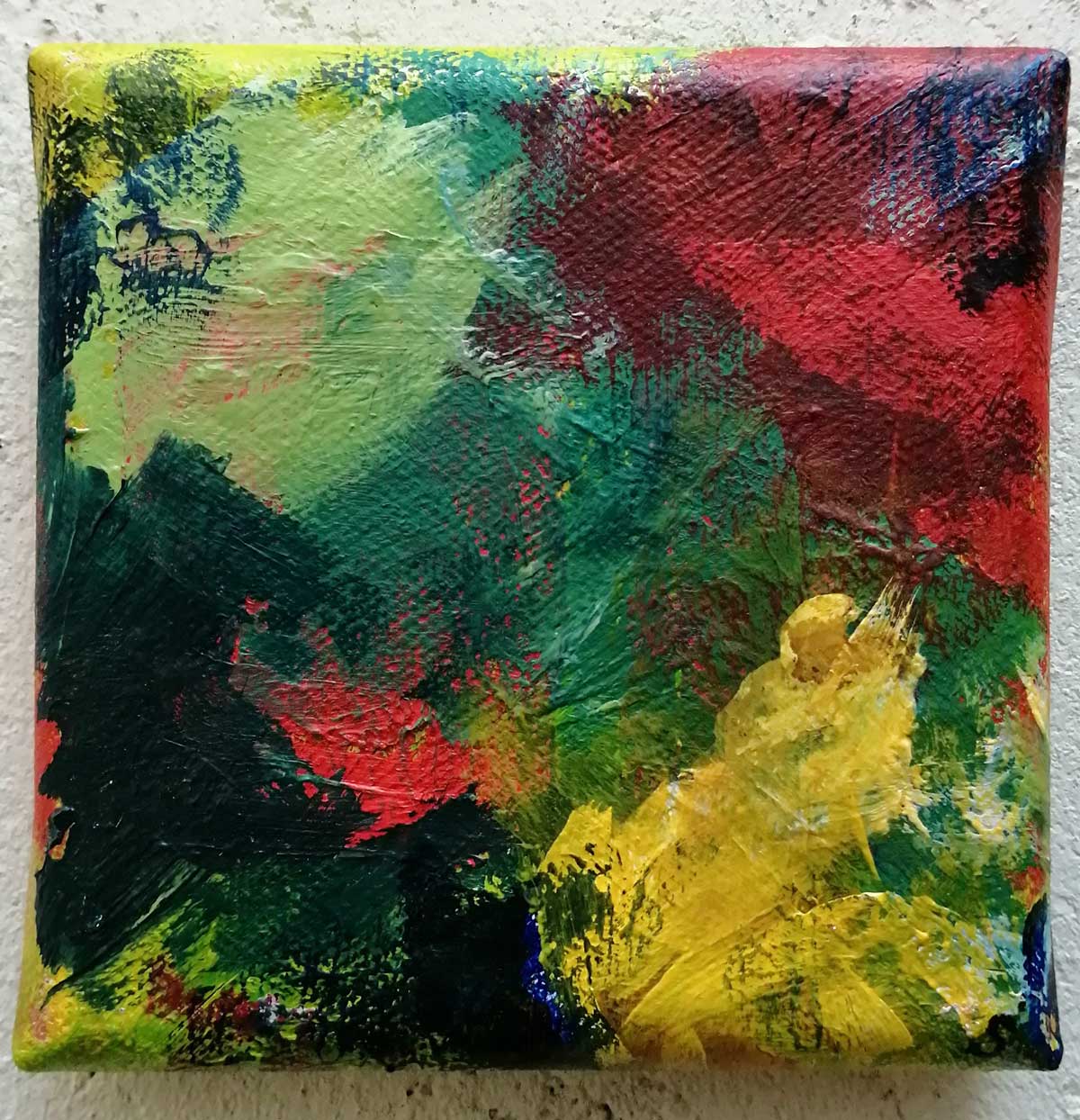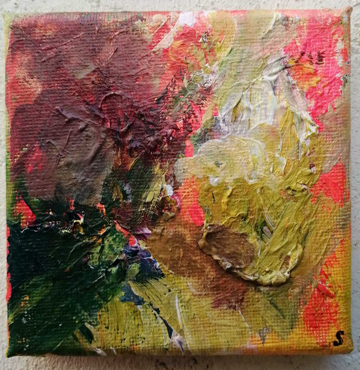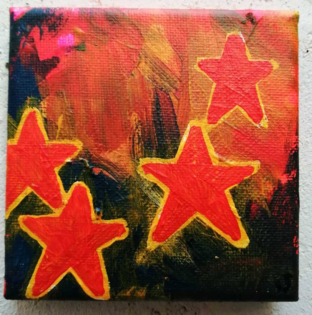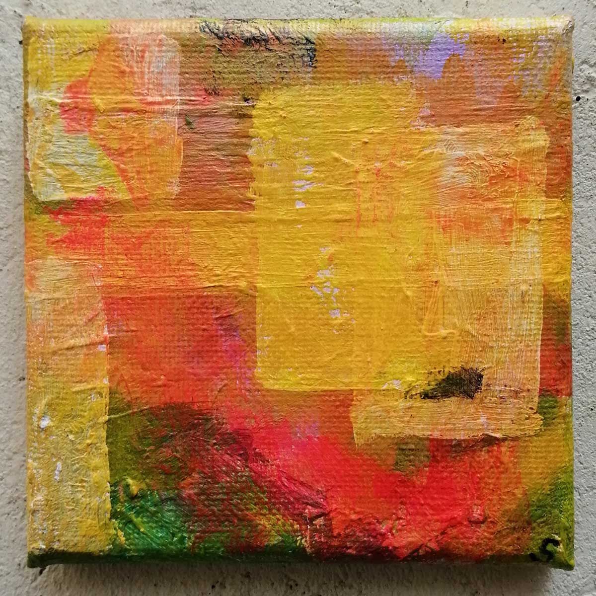 An ongoing series of daily concluded paintings, a painting finished every single day, not started and finsihed, just one a day concluded, there are always a number in progress at any give ntime here in the studio, always on a 10cm x 10cm x 1cm canvas. The daily series started in July 2020, who knows how long it will go on for? Always on a 10cm square canvas, always offered for sale at a price of £10, always Ten. The Ten paintings are generally available via the Cultivate shop or do ask, always good to ask (if it isn’t marked “sold” it is still for sale, ask me)
