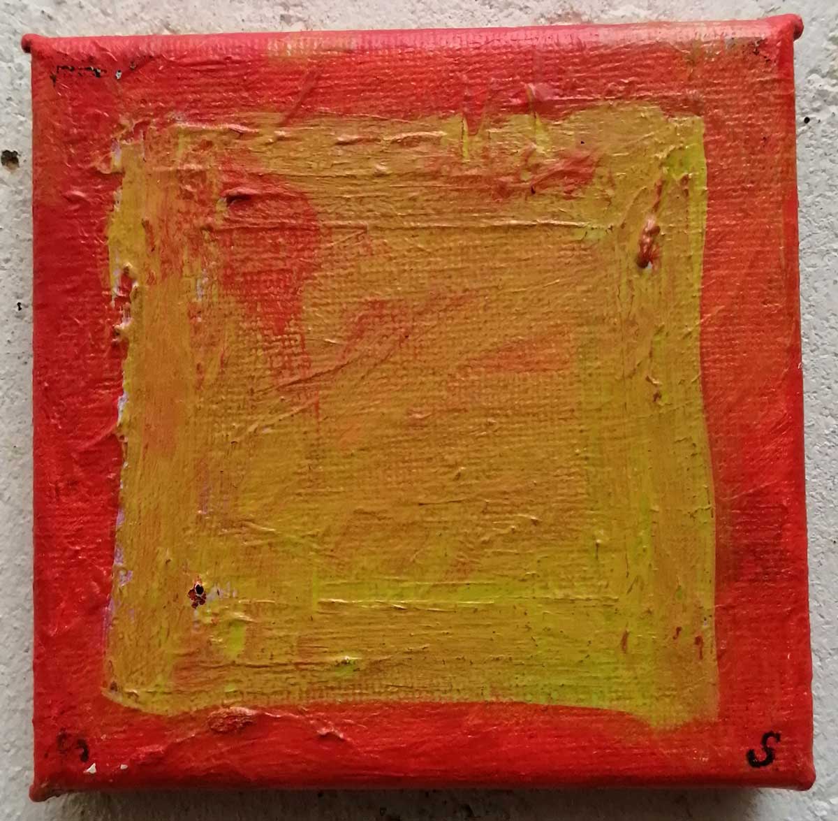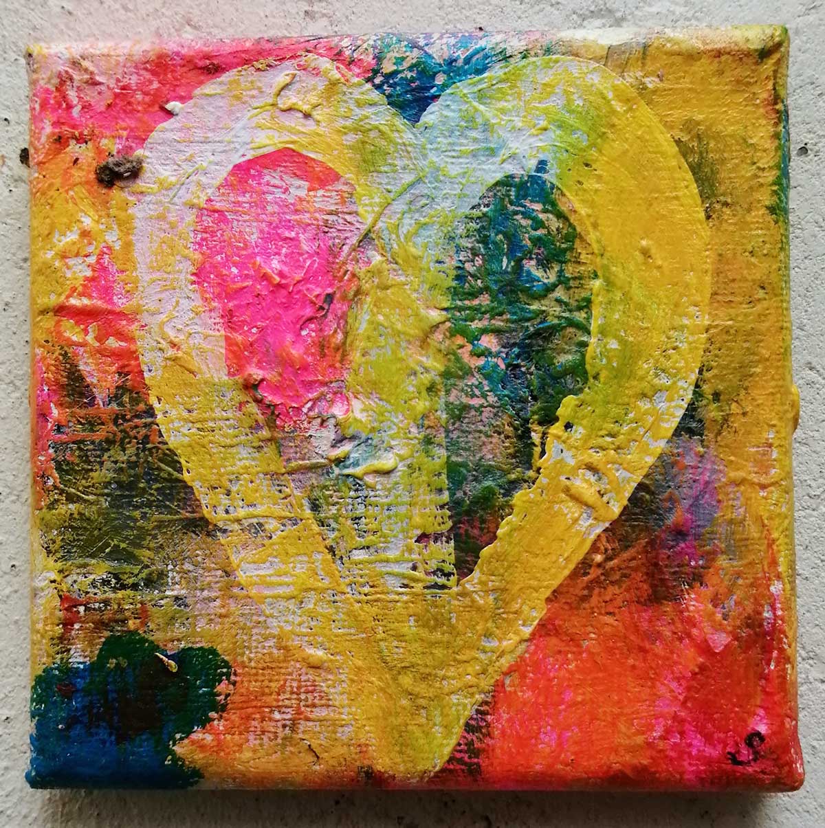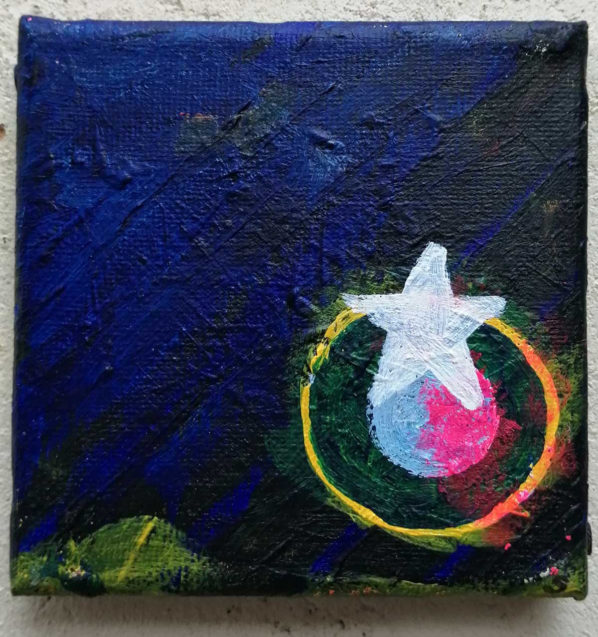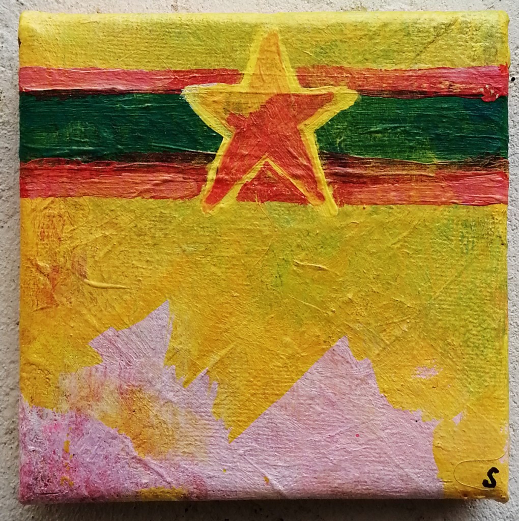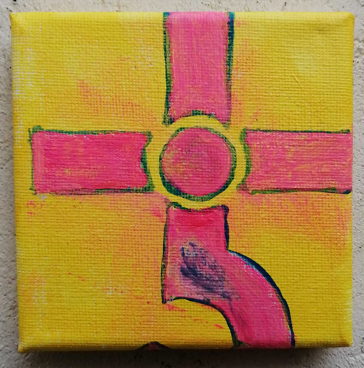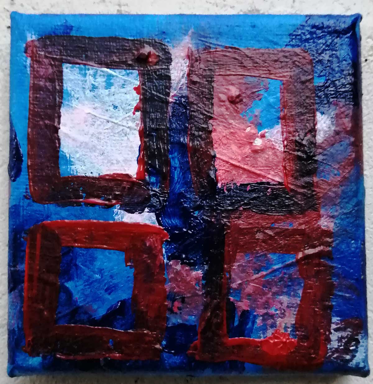 An ongoing series of daily concluded paintings, a painting finished every single day, not started and finsihed, just one a day concluded, there are always a number in progress at any give ntime here in the studio, always on a 10cm x 10cm x 1cm canvas. The daily series started in July 2020, who knows how long it will go on for? Always on a 10cm square canvas, always offered for sale at a price of £10, always Ten. The Ten paintings are generally available via the Cultivate shop or do ask, always good to ask (if it isn’t marked “sold” it is still for sale, ask me)