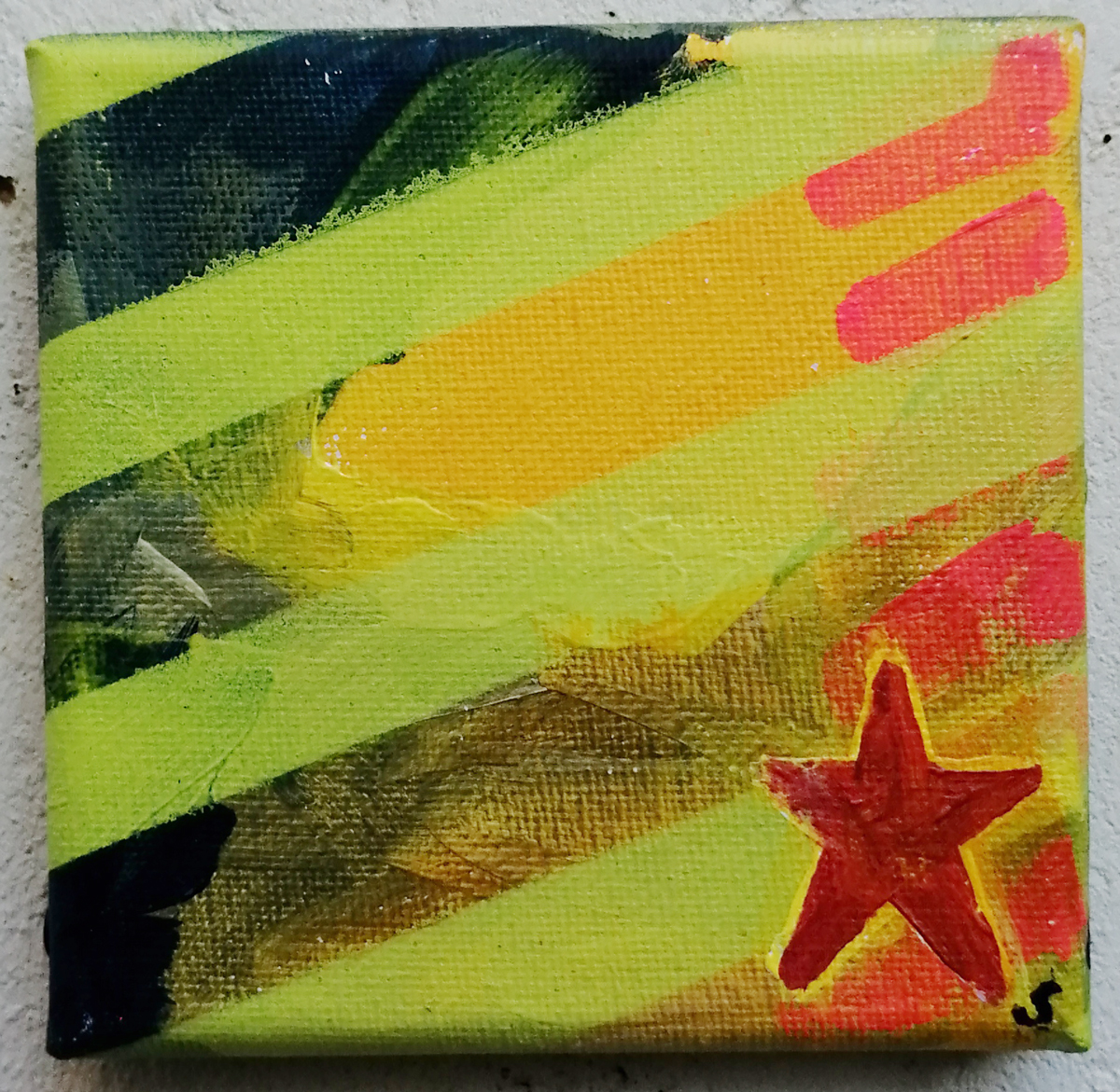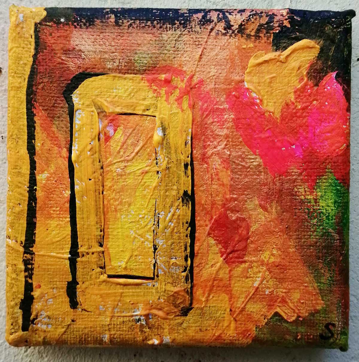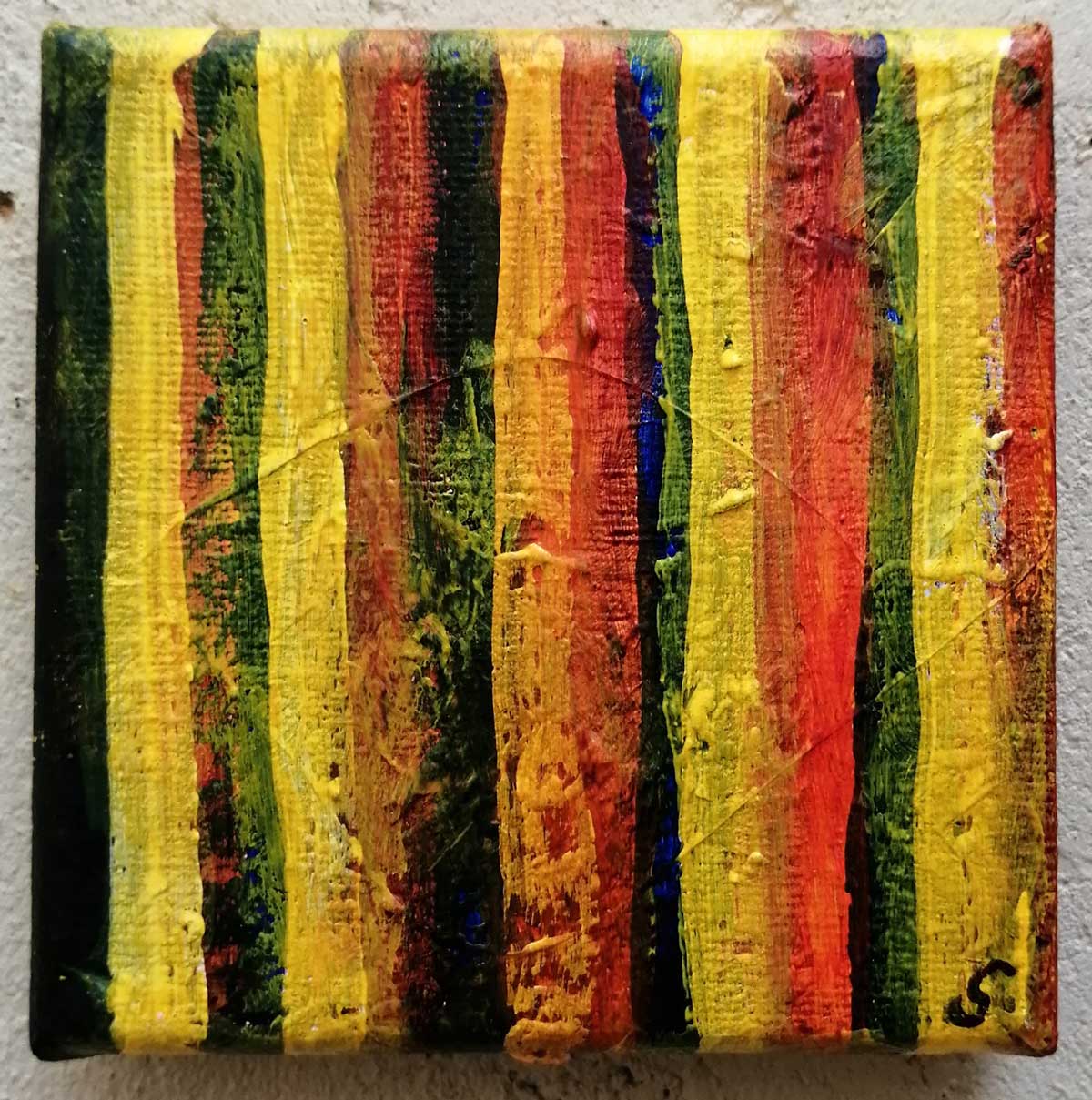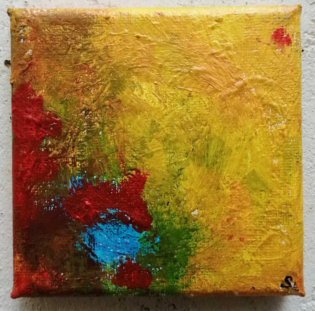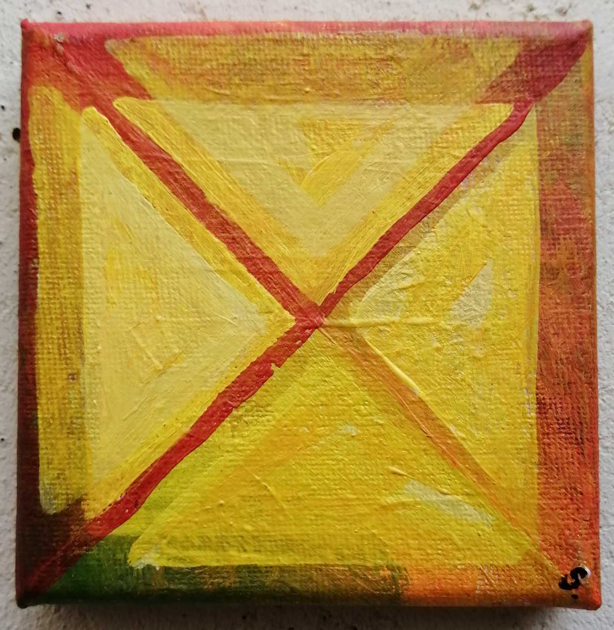 An ongoing series of daily concluded paintings, a painting finished every single day, not started and finsihed, just one a day concluded, there are always a number in progress at any give ntime here in the studio, always on a 10cm x 10cm x 1cm canvas. The daily series started in July 2020, who knows how long it will go on for? Always on a 10cm square canvas, always offered for sale at a price of £10, always Ten. The Ten paintings are generally available via the Cultivate shop or do ask, always good to ask (if it isn’t marked “sold” it is still for sale, ask me)