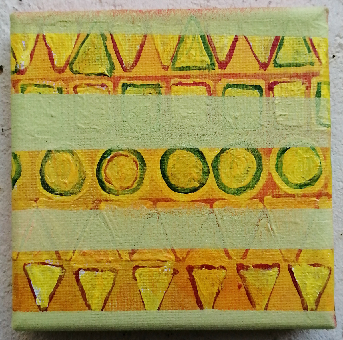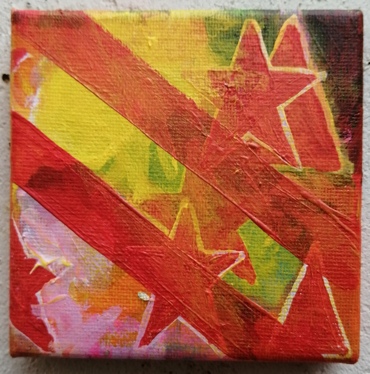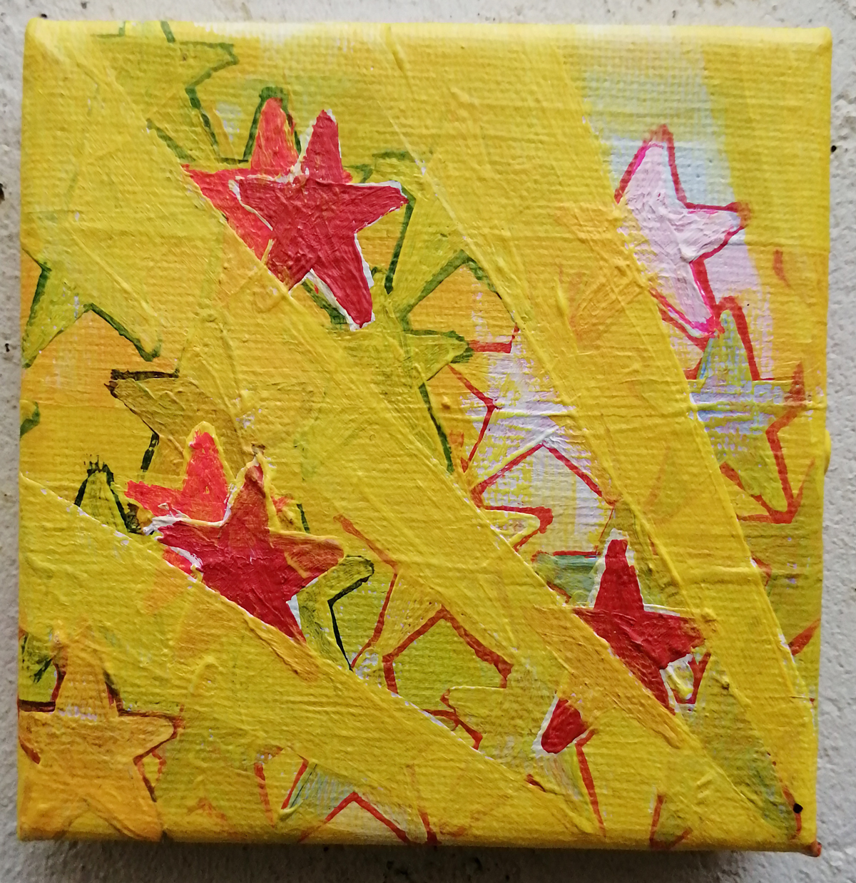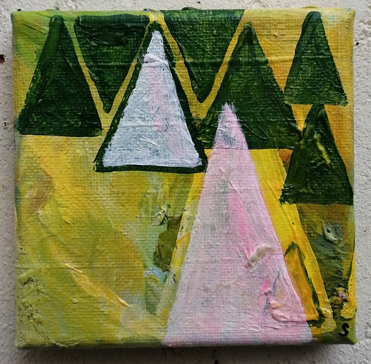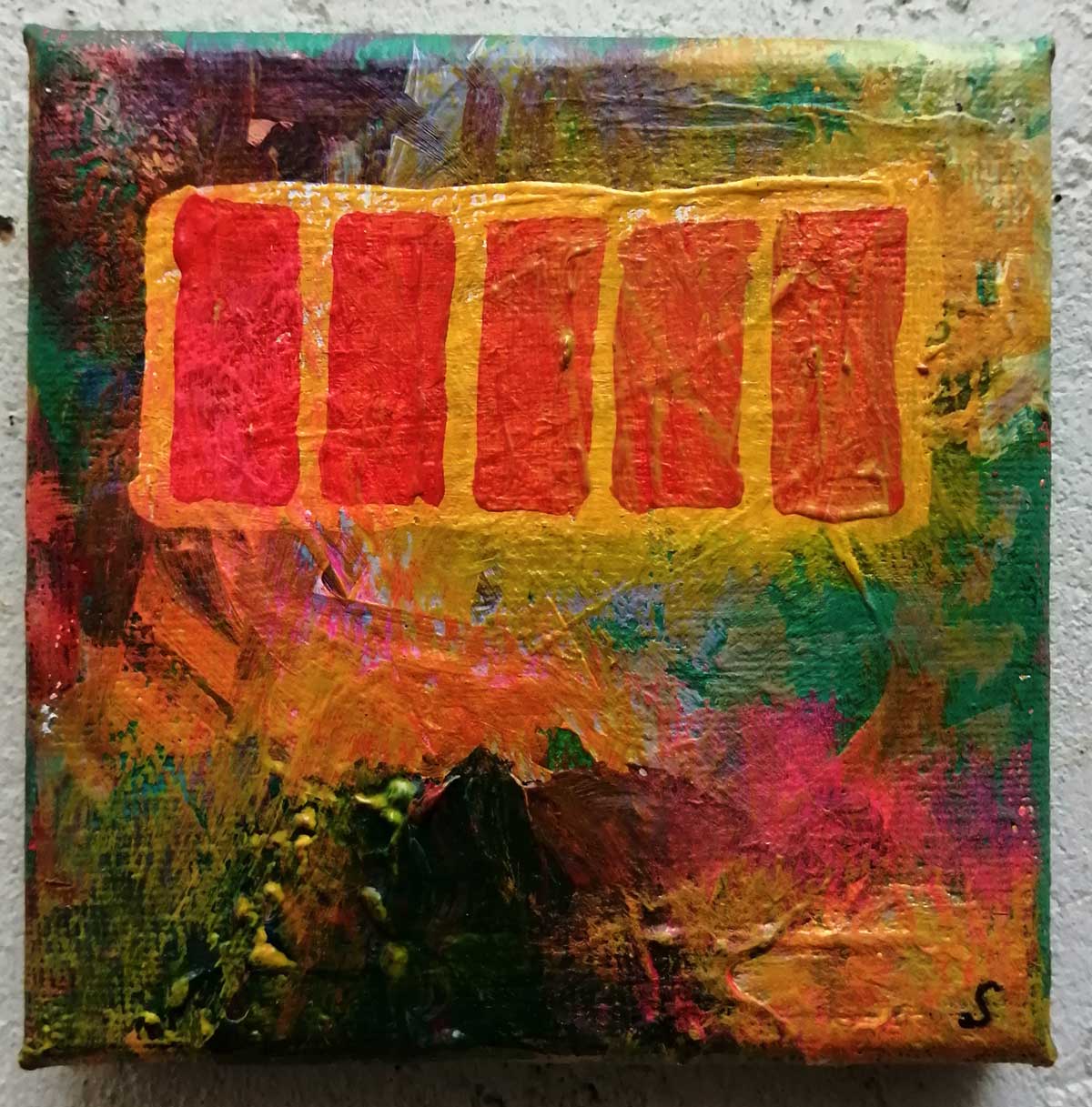 An ongoing series of daily concluded paintings, a painting finished every single day, not started and finsihed, just one a day concluded, there are always a number in progress at any give ntime here in the studio, always on a 10cm x 10cm x 1cm canvas. The daily series started in July 2020, who knows how long it will go on for? Always on a 10cm square canvas, always offered for sale at a price of £10, always Ten. The Ten paintings are generally available via the Cultivate shop or do ask, always good to ask (if it isn’t marked “sold” it is still for sale, ask me)