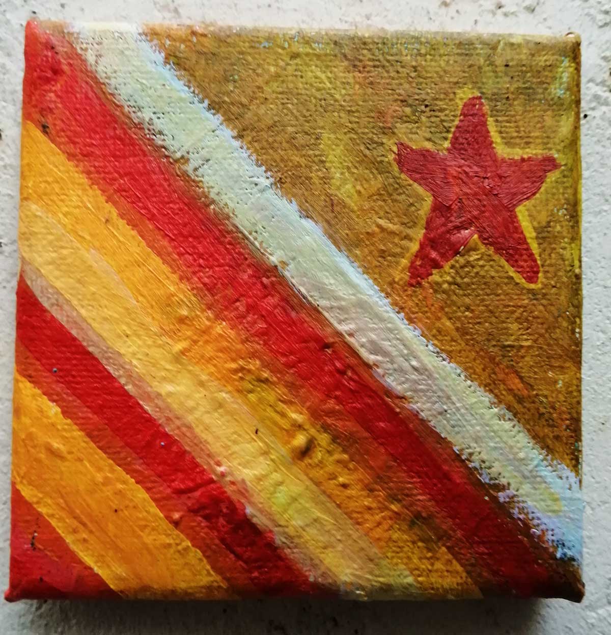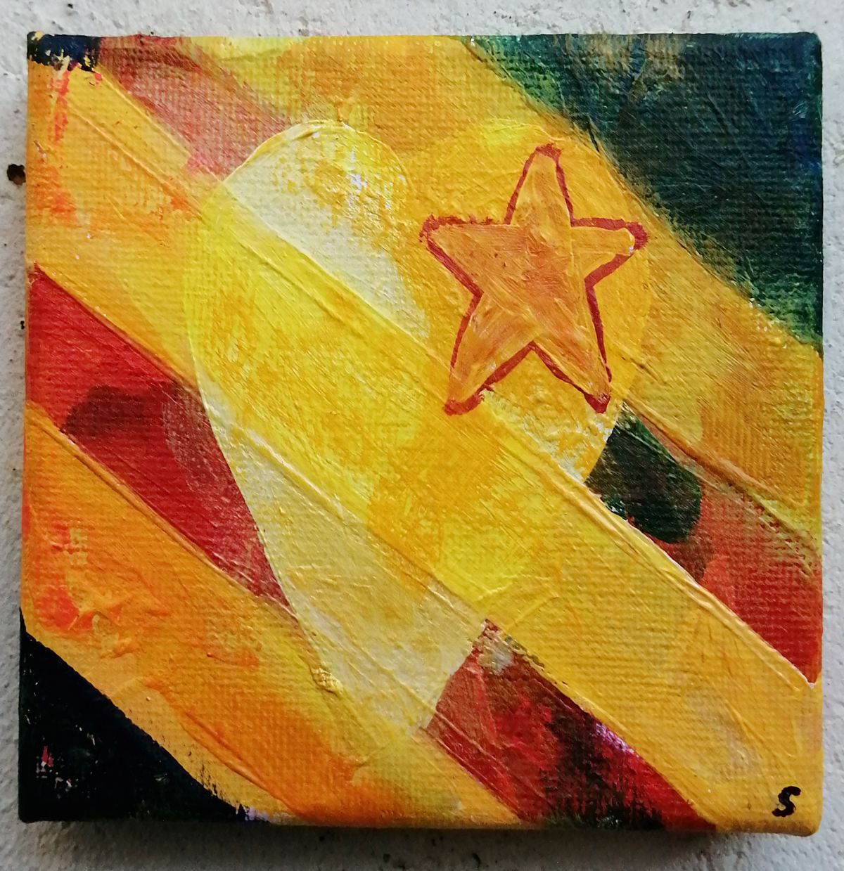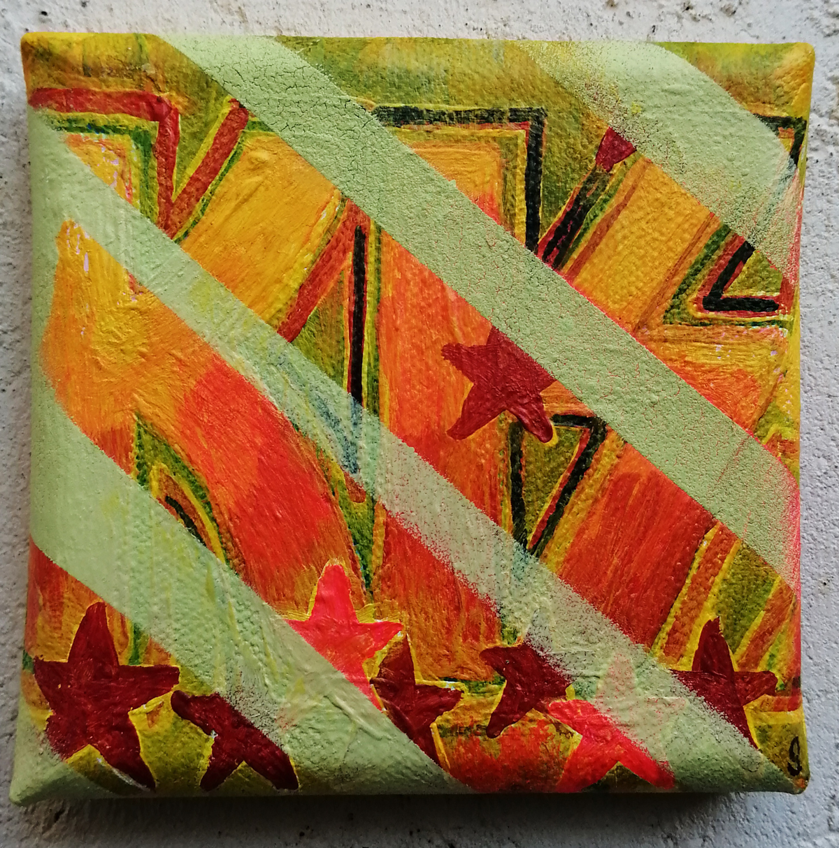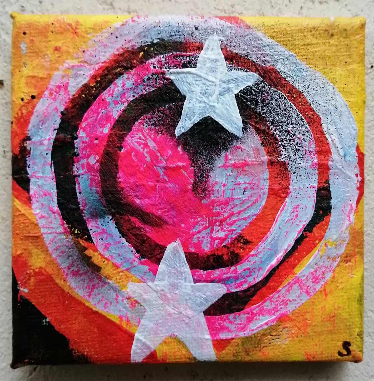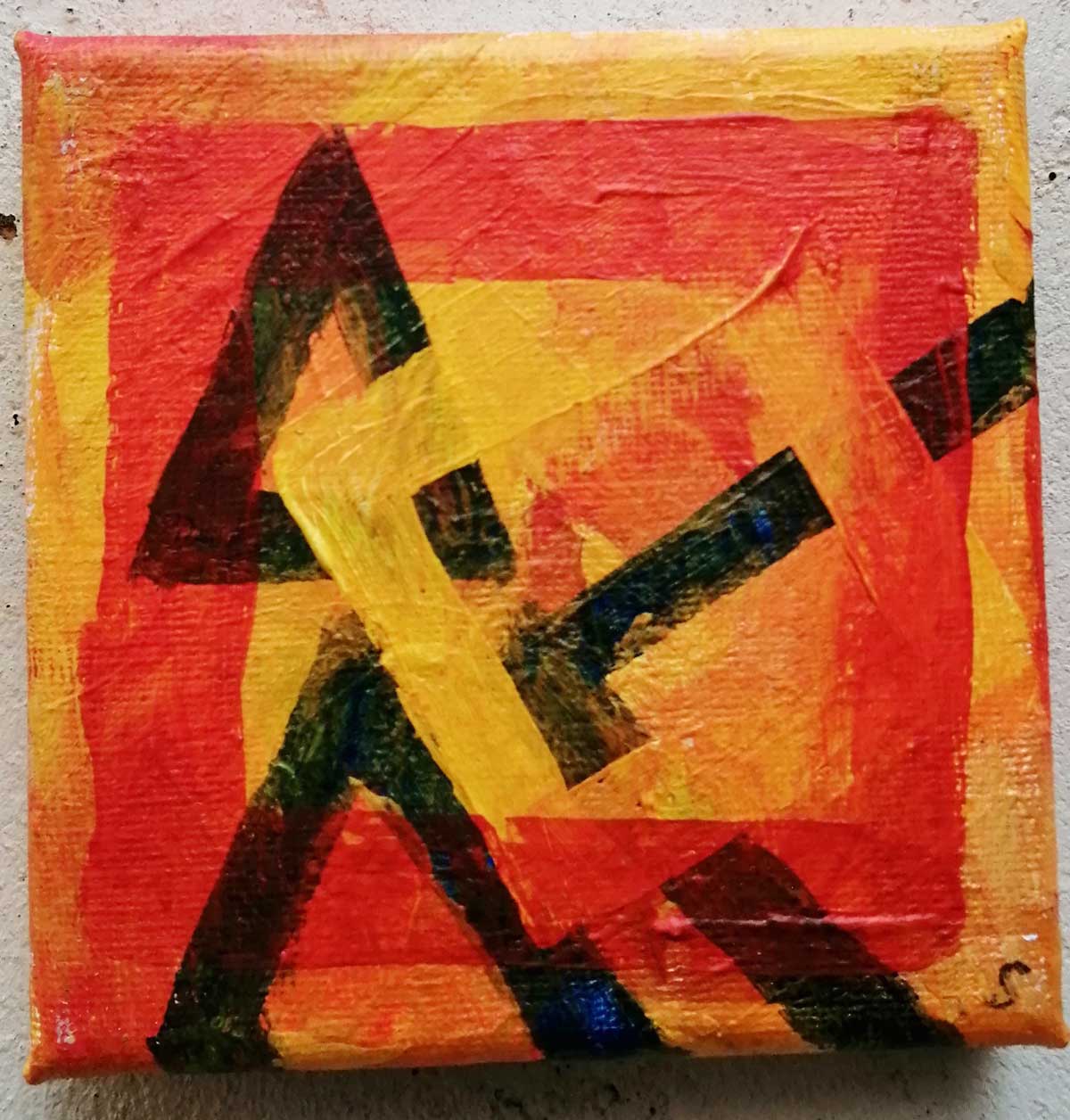 An ongoing series of daily concluded paintings, a painting finished every single day, not started and finsihed, just one a day concluded, there are always a number in progress at any give ntime here in the studio, always on a 10cm x 10cm x 1cm canvas. The daily series started in July 2020, who knows how long it will go on for? Always on a 10cm square canvas, always offered for sale at a price of £10, always Ten. The Ten paintings are generally available via the Cultivate shop or do ask, always good to ask (if it isn’t marked “sold” it is still for sale, ask me)