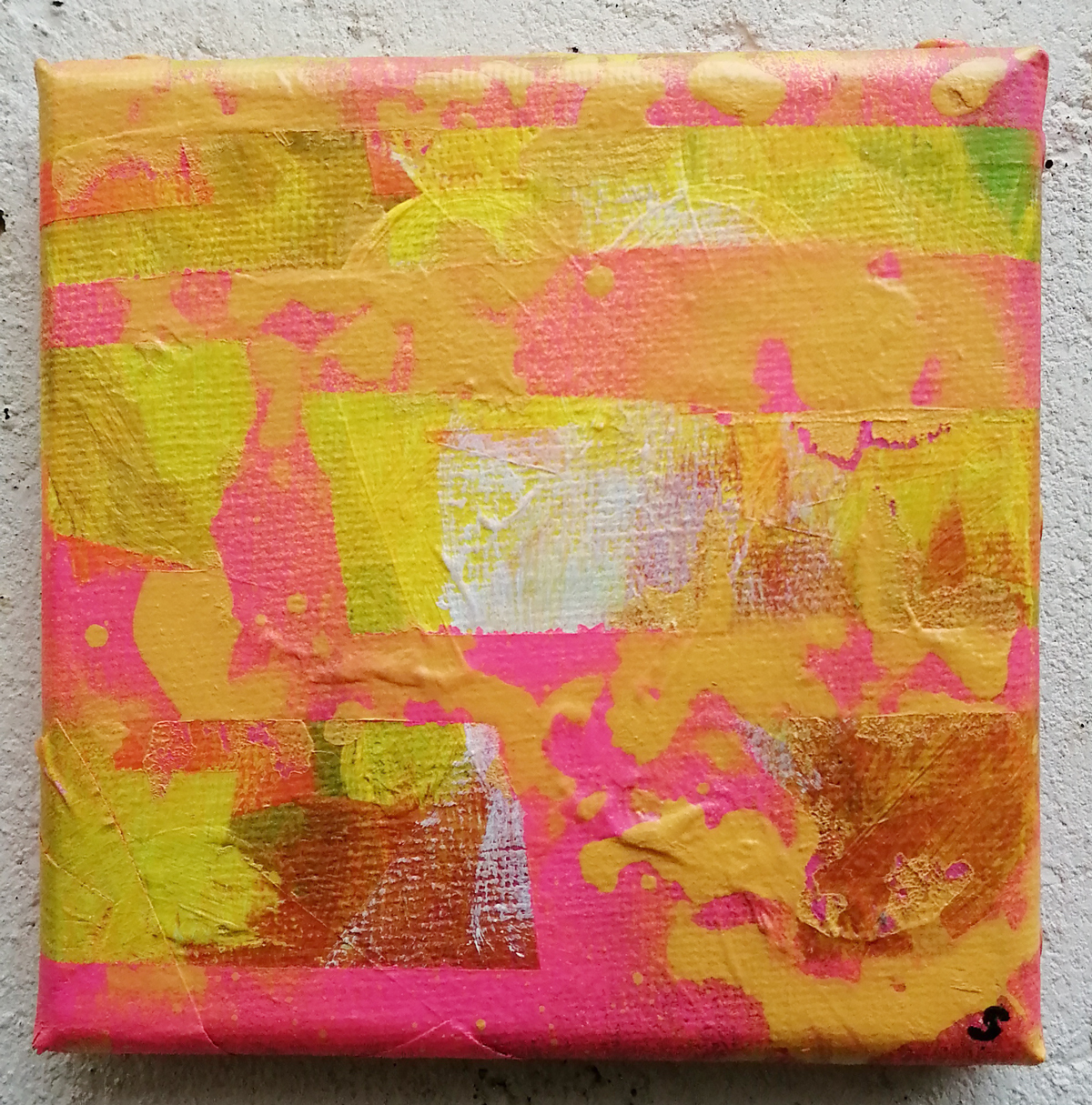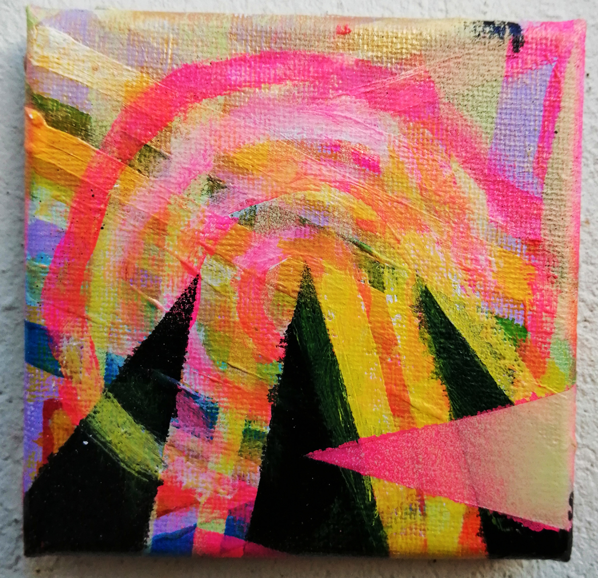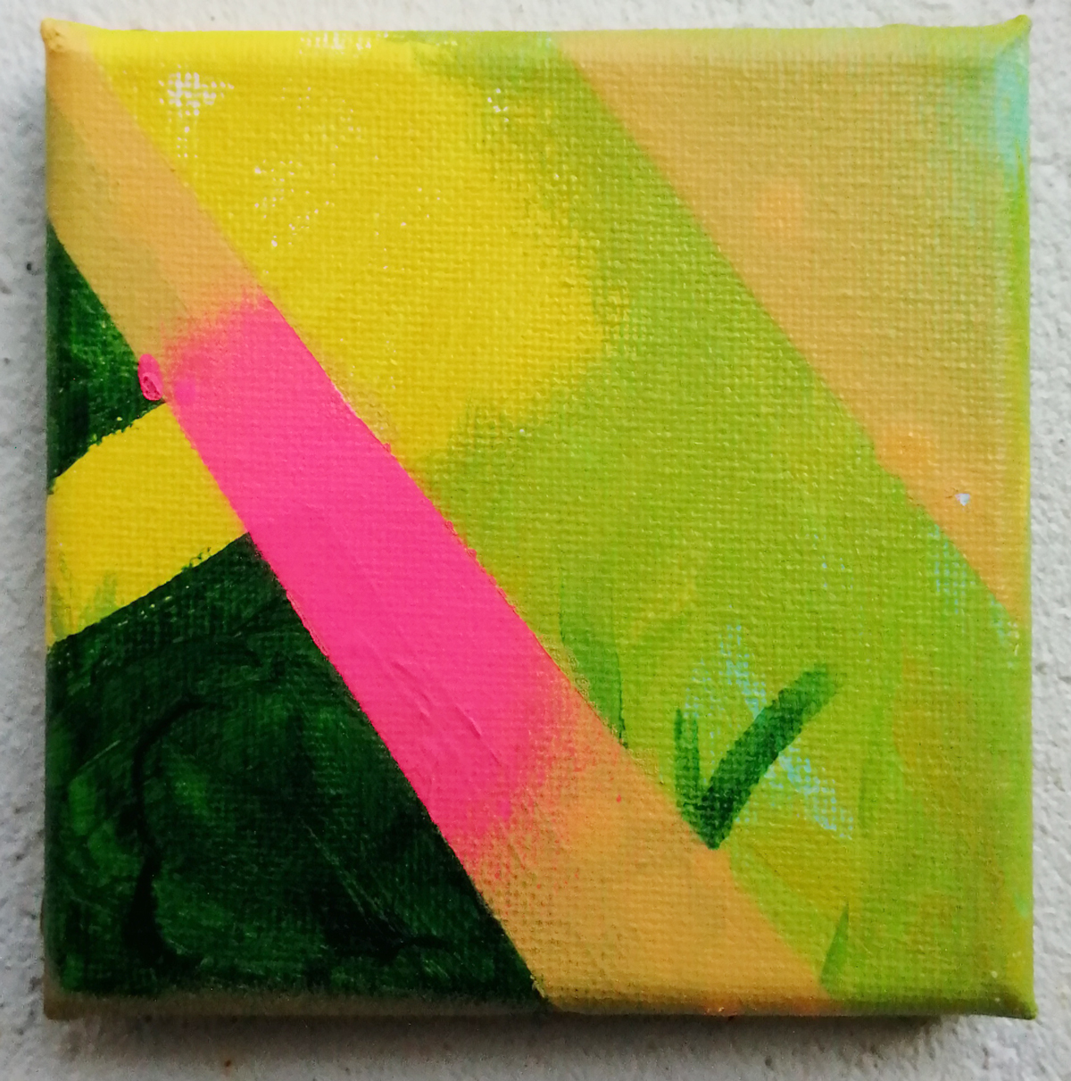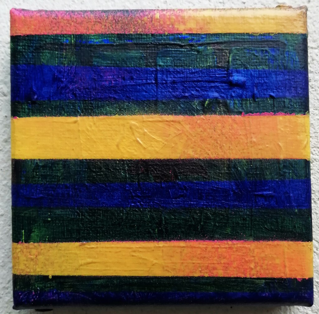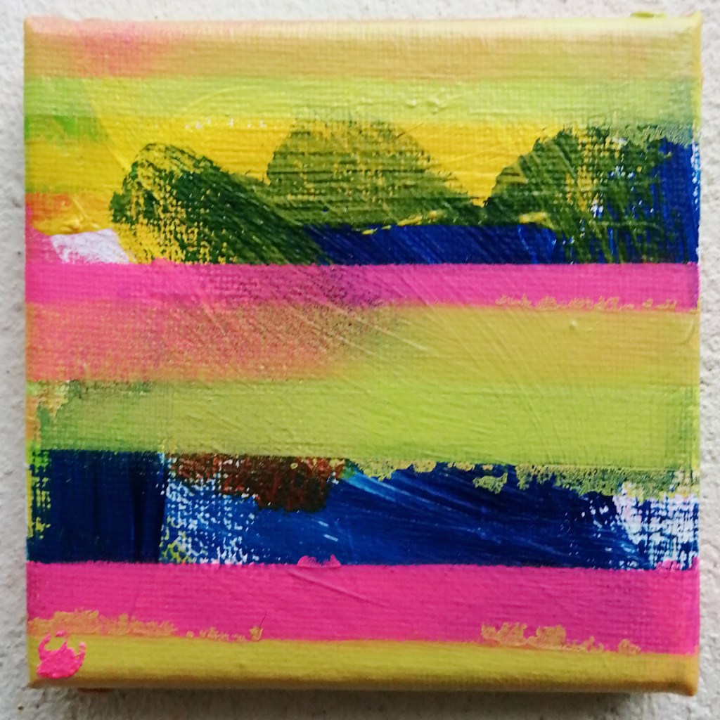 A still ongoing series of daily concluded paintings, a painting finished every single day, not started and finished, just one a day concluded. There are always a number of pieces in progress at any given time here in the studio. Always on a 10cm x 10cm x 1cm canvas. The daily series started in July 2020, who knows how long it will go on for? Always on a 10cm square canvas, always offered for sale at a price of £10, always Ten. The Ten paintings are generally available via the Cultivate shop or alternatively do ask, always good to ask, everything that is still for sale is either in the shop or not marked “sold” here, send a message if you want one that isn’t in the shop.