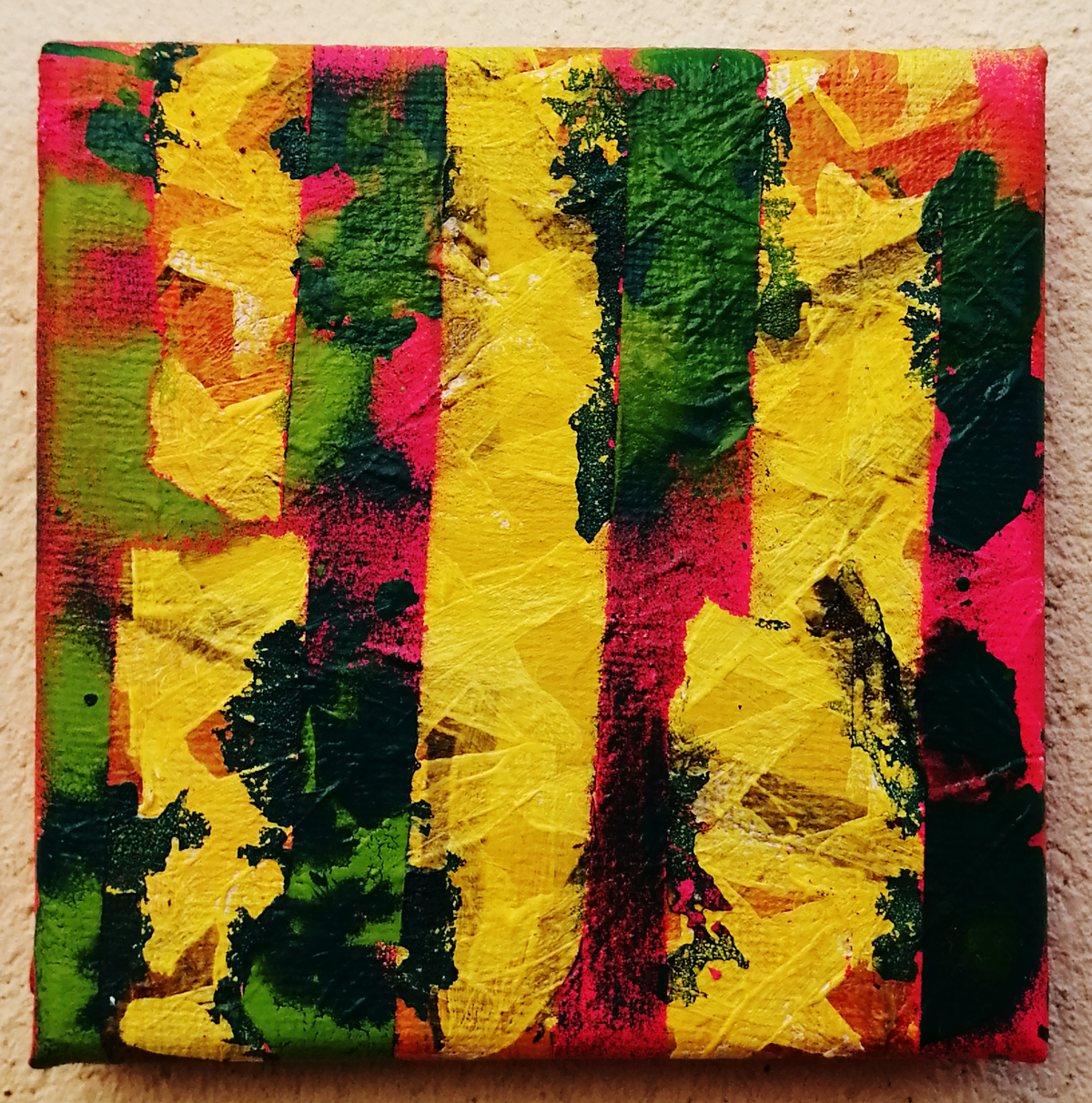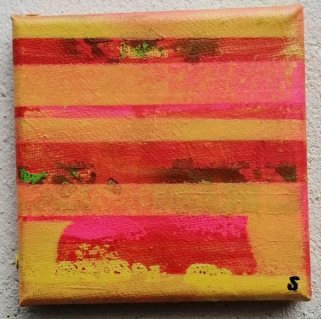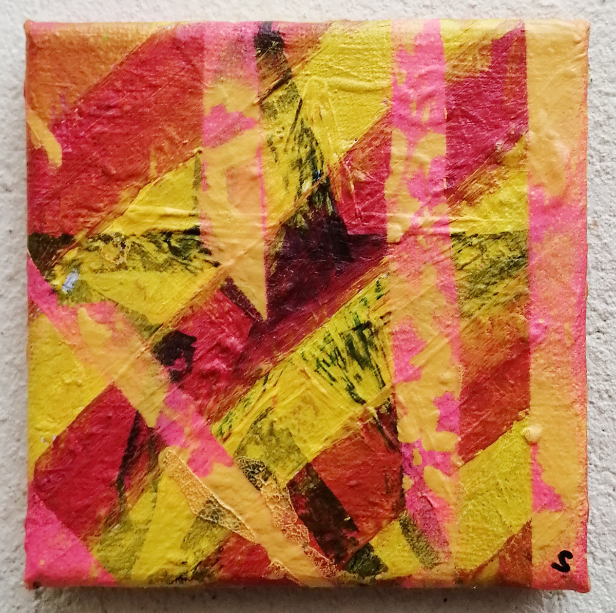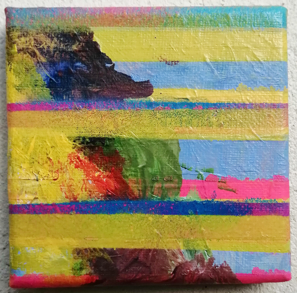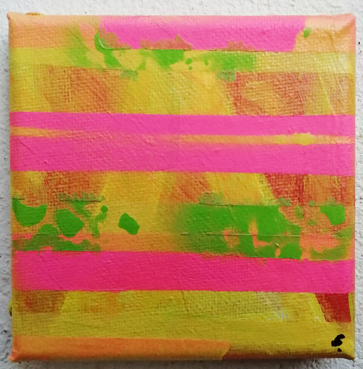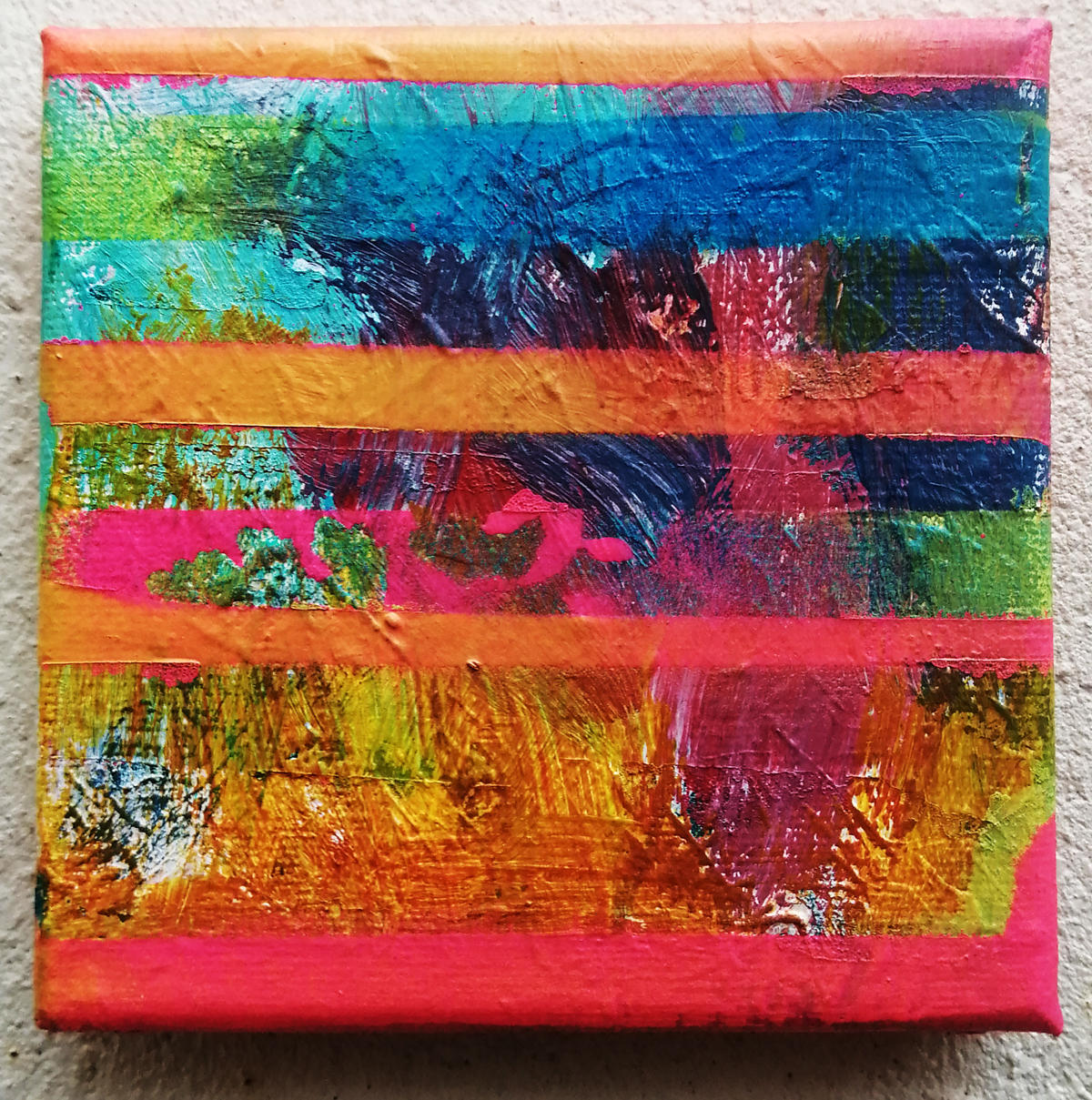 A still ongoing series of daily concluded paintings, a painting finished every single day, not started and finished, just one a day concluded. There are always a number of pieces in progress at any given time here in the studio. Always on a 10cm x 10cm x 1cm canvas. The daily series started in July 2020, who knows how long it will go on for? Always on a 10cm square canvas, always offered for sale at a price of £10, always Ten. The Ten paintings are generally available via the Cultivate shop or alternatively do ask, always good to ask, everything that is still for sale is either in the shop or not marked “sold” here, send a message if you want one that isn’t in the shop.