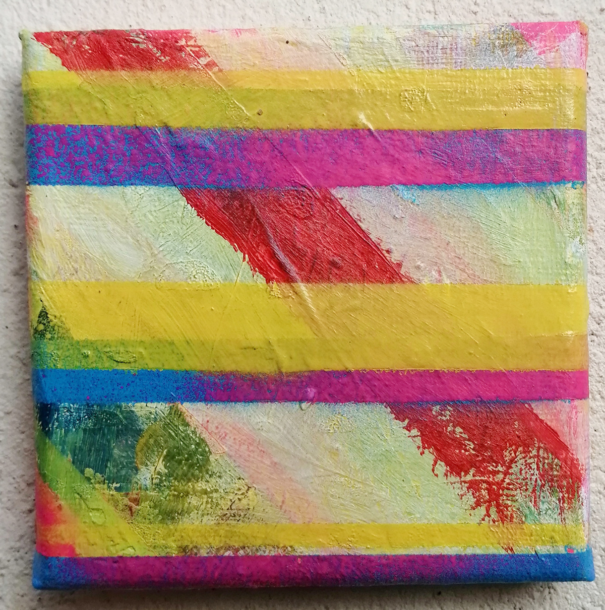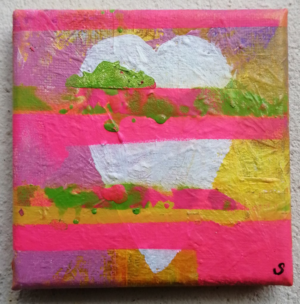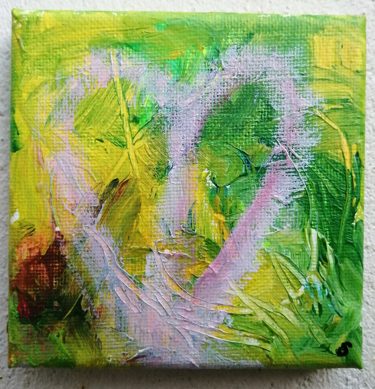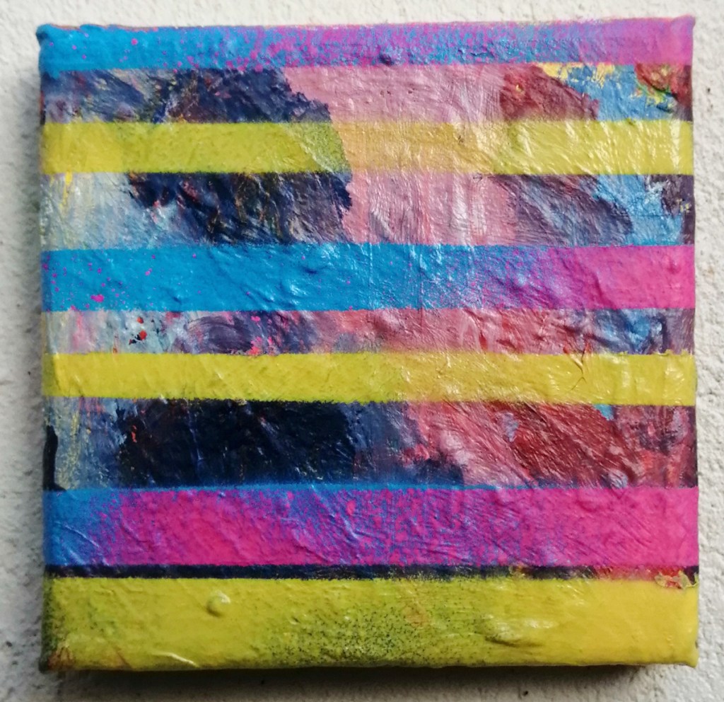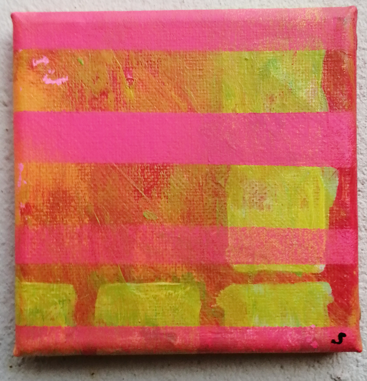 A still ongoing series of daily concluded paintings, a painting finished every single day, not started and finished, just one a day concluded. There are always a number of pieces in progress at any given time here in the studio. Always on a 10cm x 10cm x 1cm canvas. The daily series started in July 2020, who knows how long it will go on for? Always on a 10cm square canvas, always offered for sale at a price of £10, always Ten. The Ten paintings are generally available via the Cultivate shop or alternatively do ask, always good to ask, everything that is still for sale is either in the shop or not marked “sold” here, send a message if you want one that isn’t in the shop.