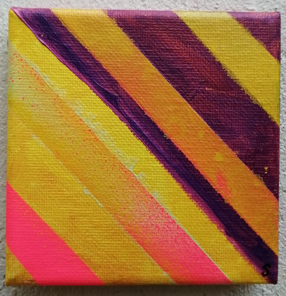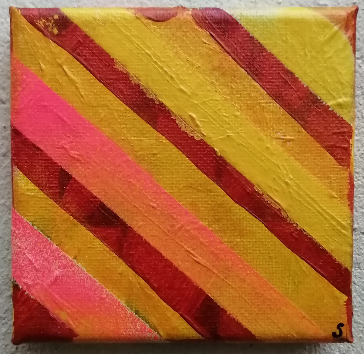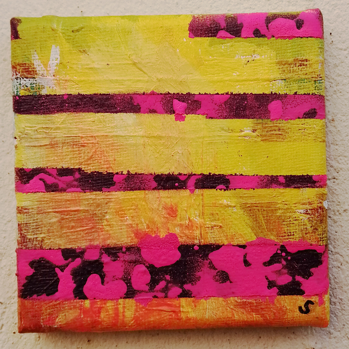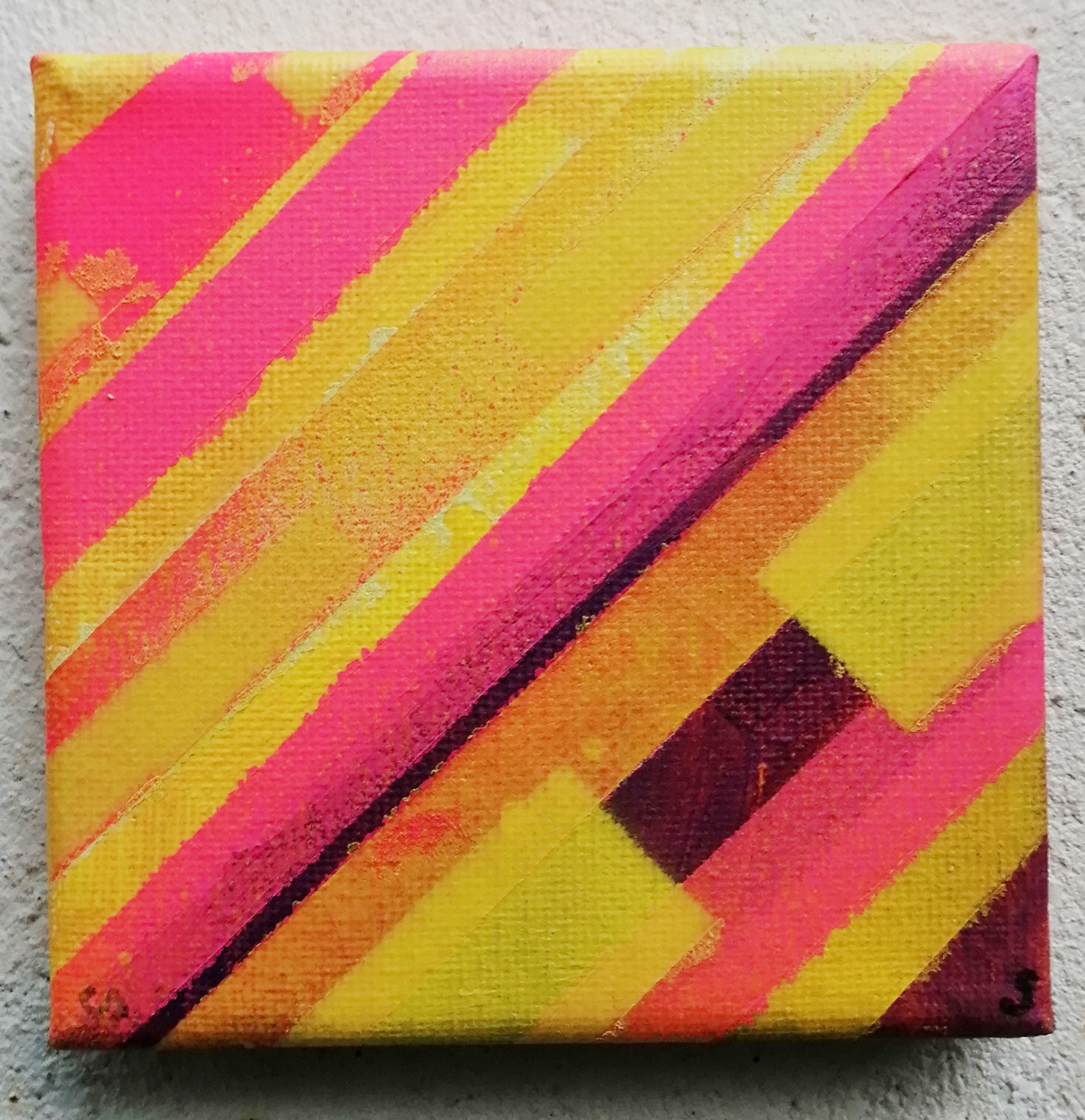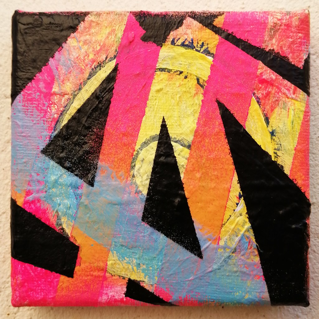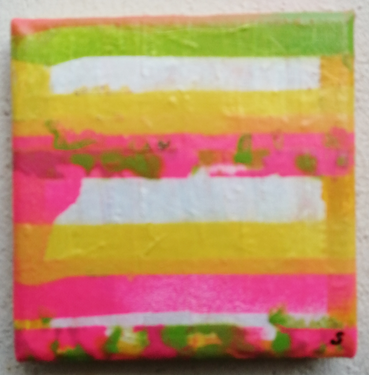 A still ongoing series of daily concluded paintings, a painting finished every single day, not started and finished, just one a day concluded. There are always a number of pieces in progress at any given time here in the studio. Always on a 10cm x 10cm x 1cm canvas. The daily series started in July 2020, who knows how long it will go on for? Always on a 10cm square canvas, always offered for sale at a price of £10, always Ten. The Ten paintings are generally available via the Cultivate shop or alternatively do ask, always good to ask, everything that is still for sale is either in the shop or not marked “sold” here, send a message if you want one that isn’t in the shop.