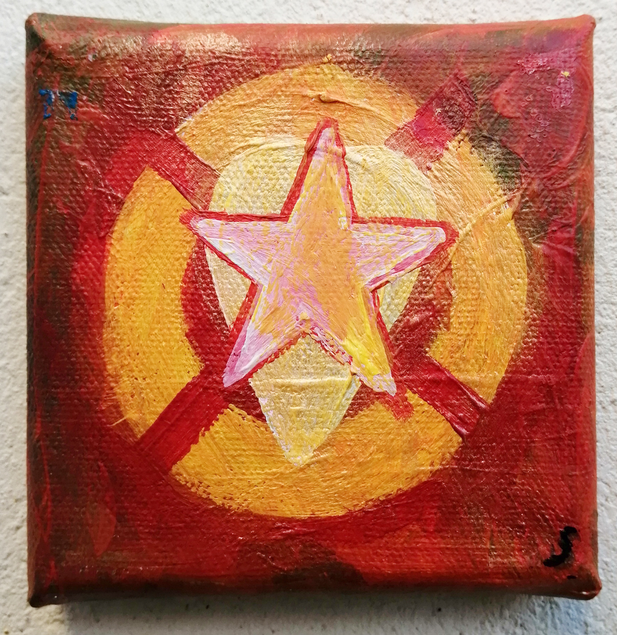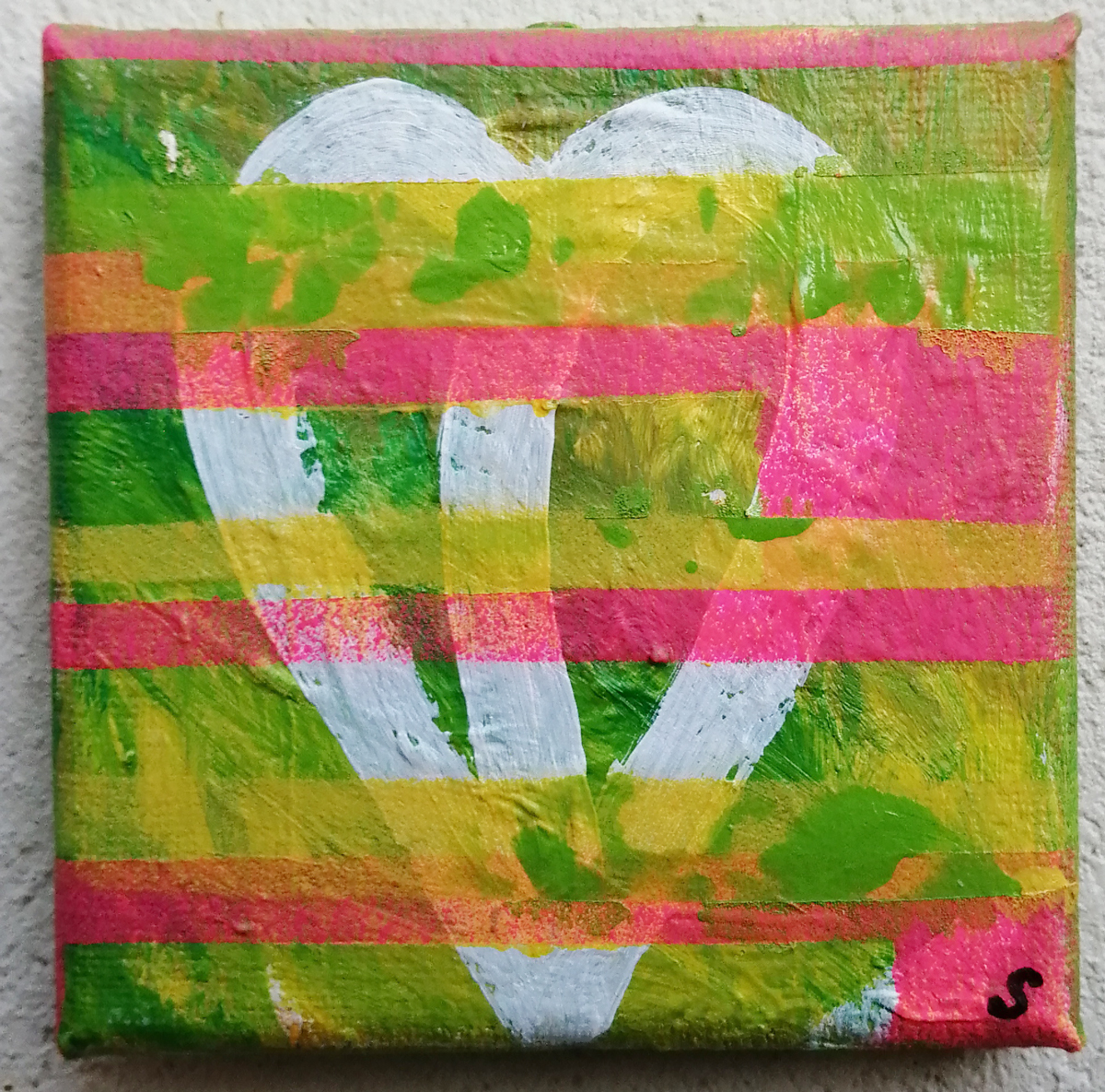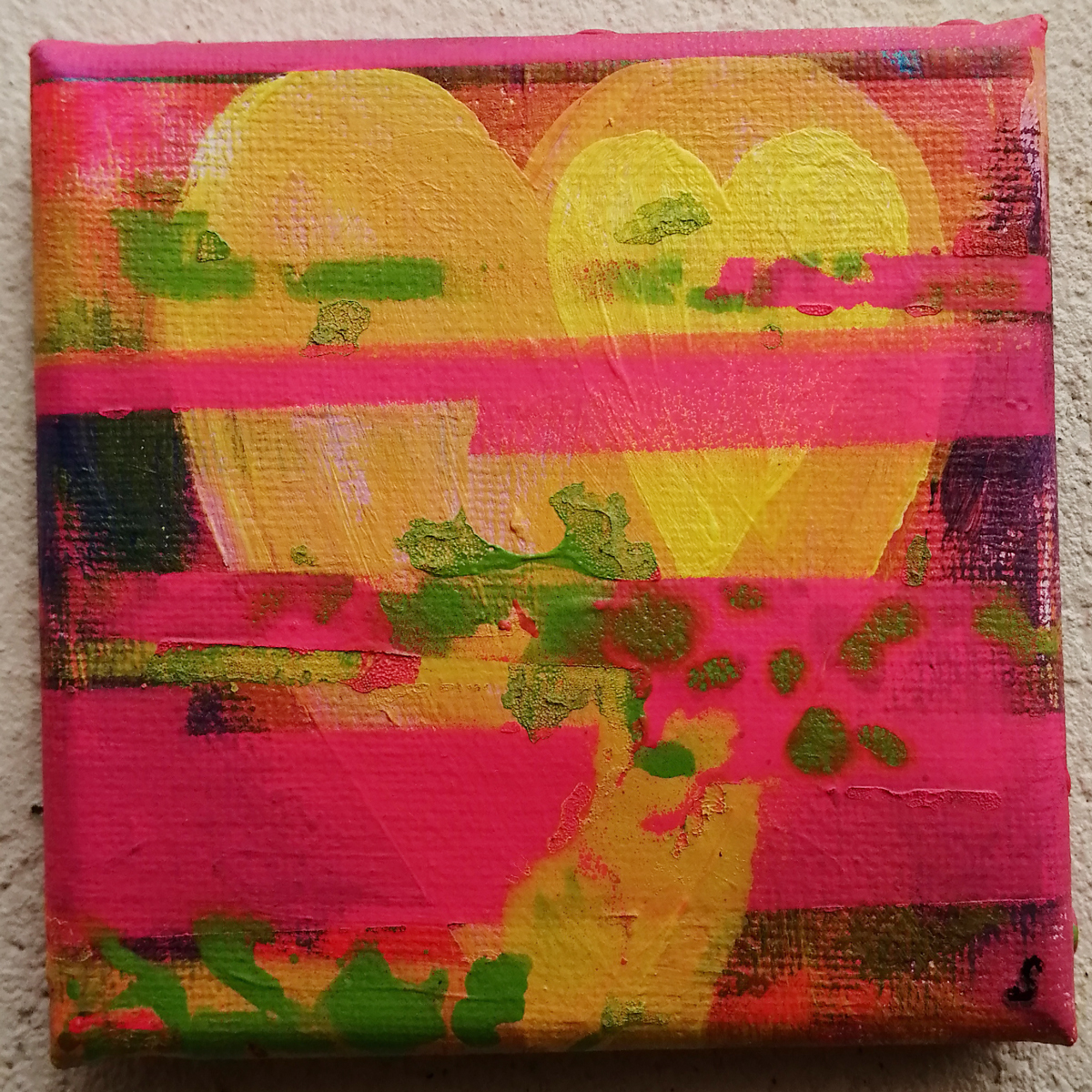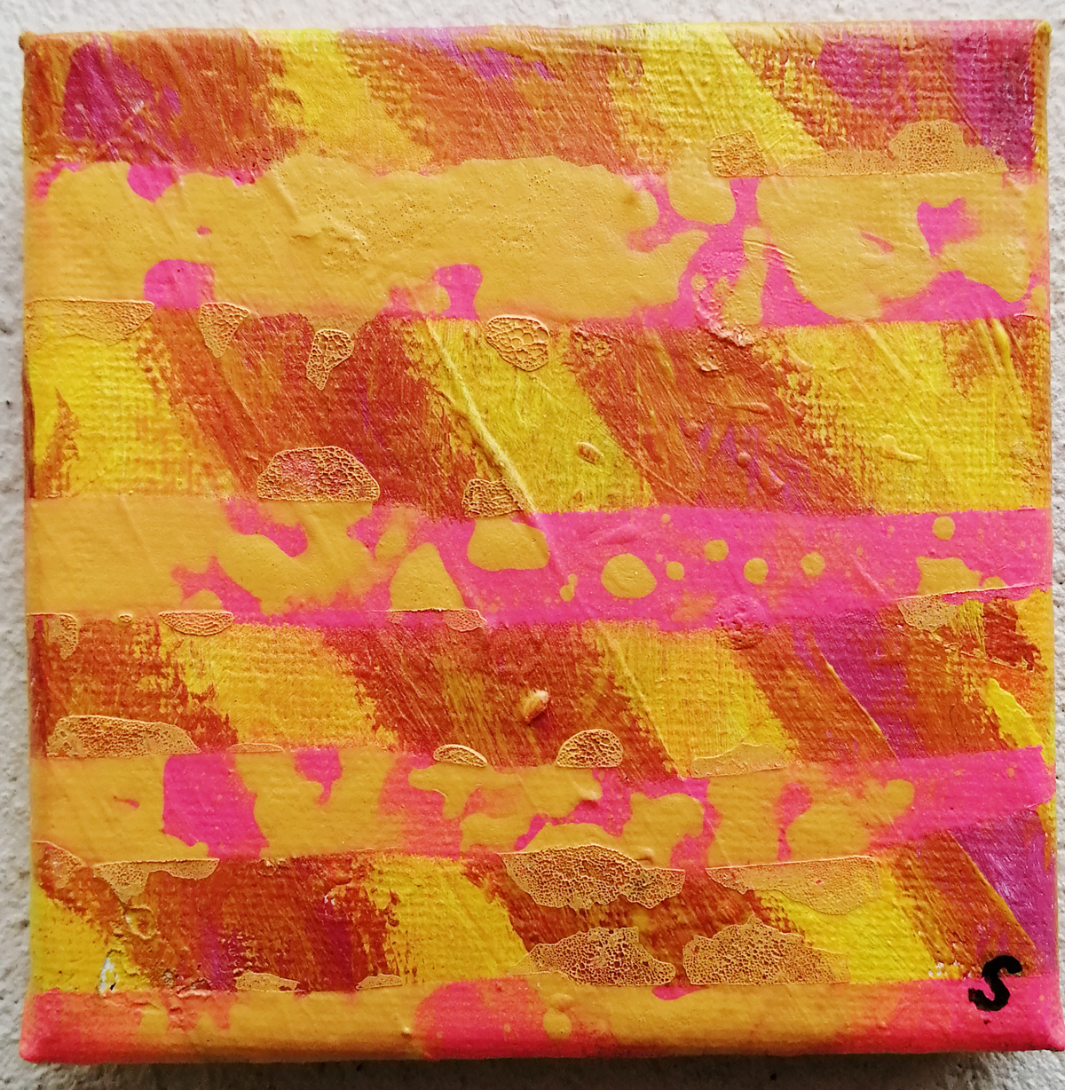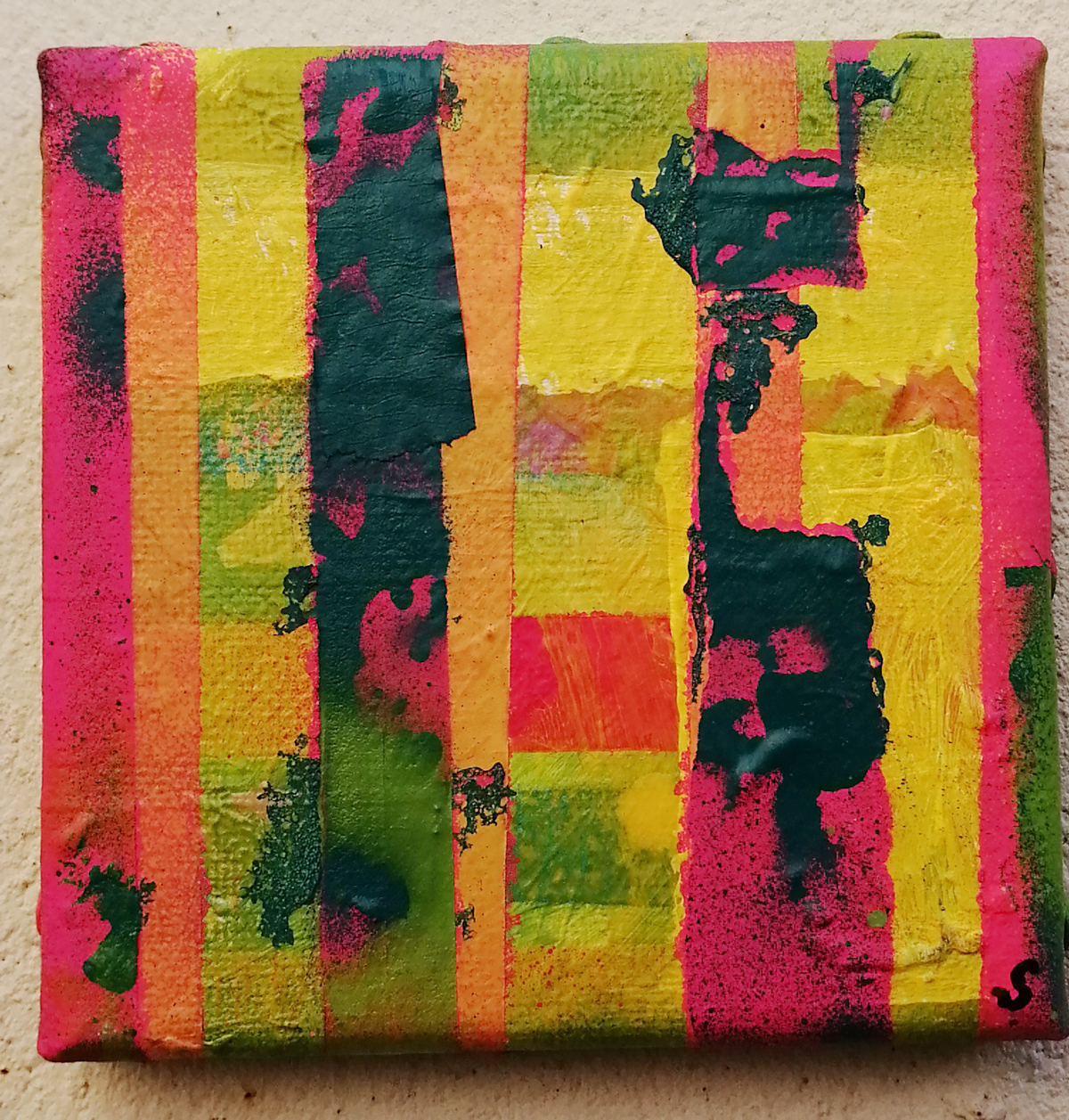 A still ongoing series of daily concluded paintings, a painting finished every single day, not started and finished, just one a day concluded. There are always a number of pieces in progress at any given time here in the studio. Always on a 10cm x 10cm x 1cm canvas. The daily series started in July 2020, who knows how long it will go on for? Always on a 10cm square canvas, always offered for sale at a price of £10, always Ten. The Ten paintings are generally available via the Cultivate shop or alternatively do ask, always good to ask, everything that is still for sale is either in the shop or not marked “sold” here, send a message if you want one that isn’t in the shop.