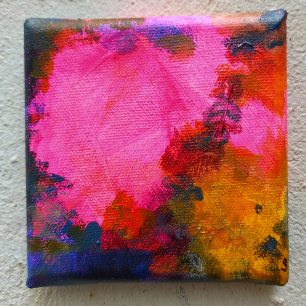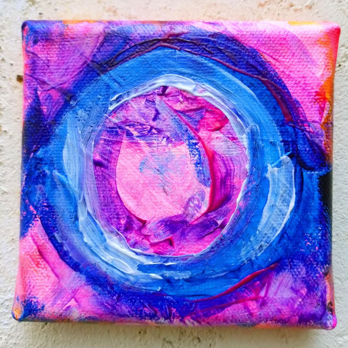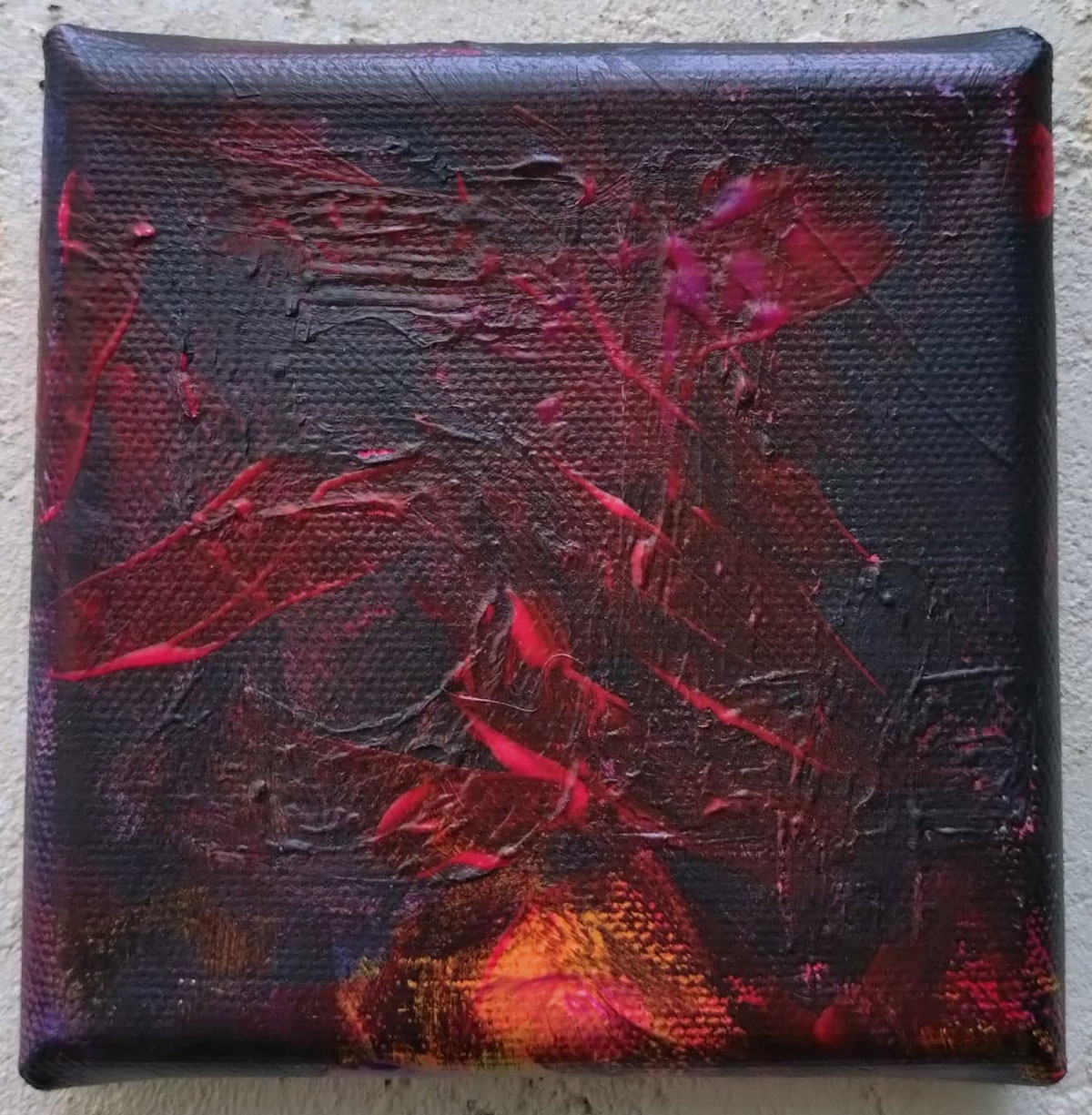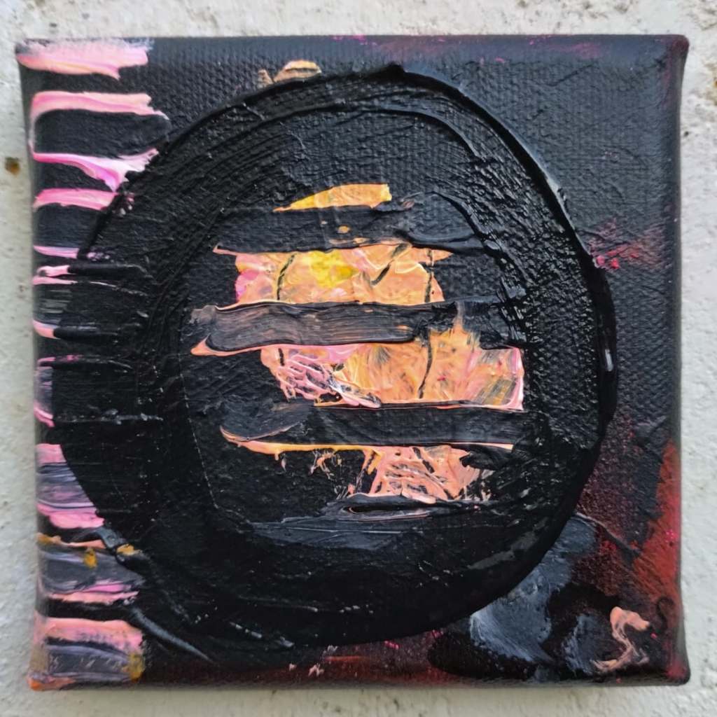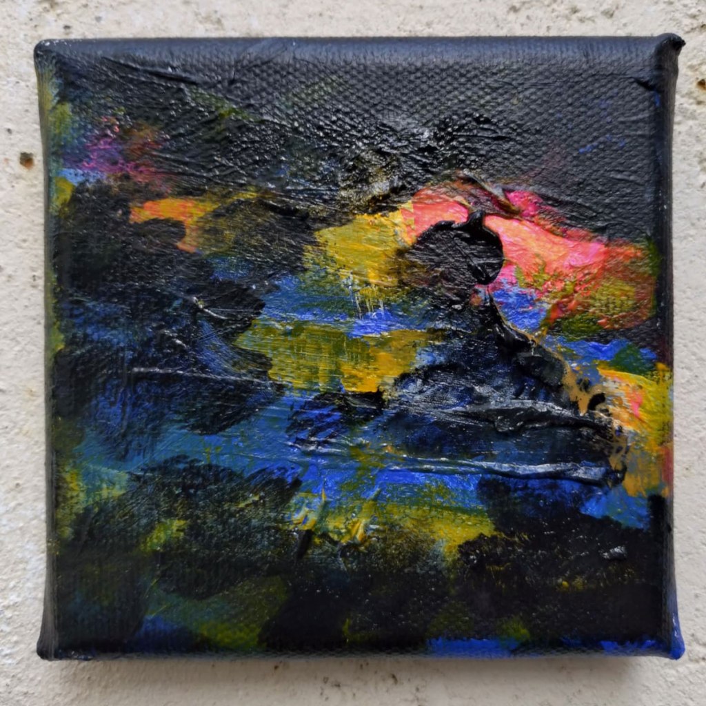 The daily painting series was completed back on 6th April 2023. A series of daily concluded 10cm square paintings, a painting finished every single day, not started and finished on the same day, just one concluded every day – there was always a number of Ten paintings in progress at any given time here in the studio. Always on a 10cm x 10cm x 1cm canvas, The daily series started back in July 2020, the series was brought to an end on the 1000th day at the start of April 2023. The paintings were always on a 10cm square canvas, always offered for sale at a price of just £10, always Ten, ten was the thing. You can find images of all one thousand paintings here. When the series ended I said I imagined I will carry on painting 10cm paintings but not every day… And that has indeed been the case, here are all the Tens since the series ended back in April. It will go on, I rather like the format…