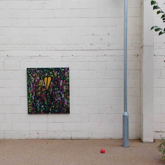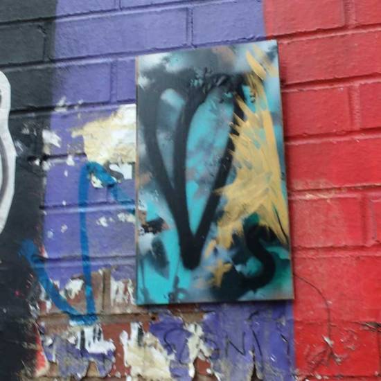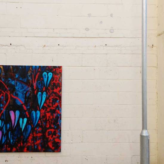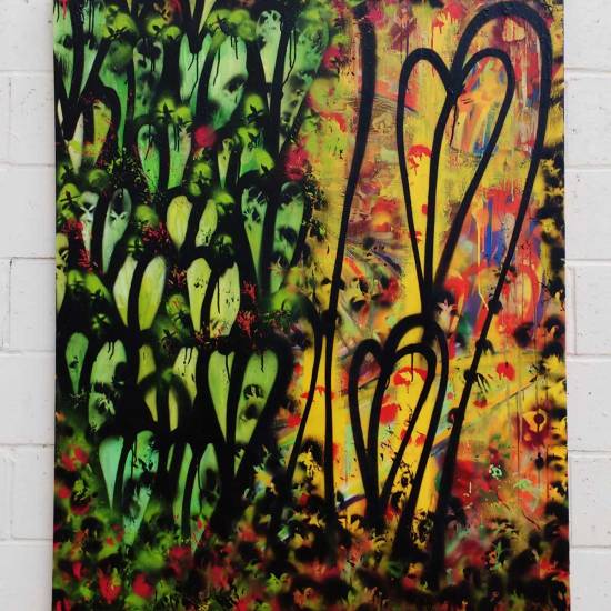 Sean Worrall – “Unquiet Slumbers For The Sleepers” – acrylic, spray paint on deep edge recycled canvas (150cm x 150cm)