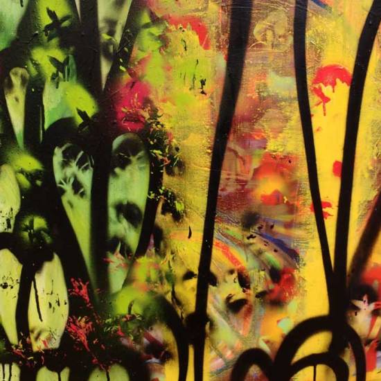 Sean Worrall – “Unquiet Slumbers For The Sleepers” (detail) – acrylic, spray paint on deep edge recycled canvas (150cm x 150cm)