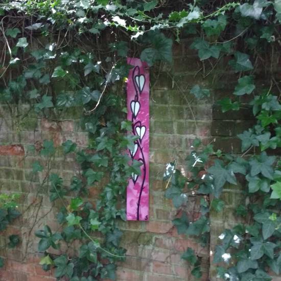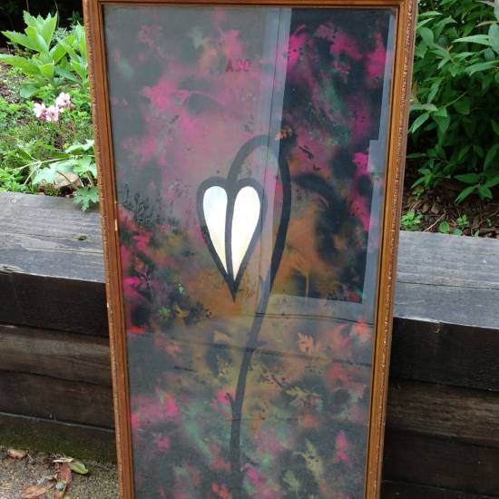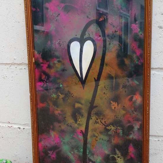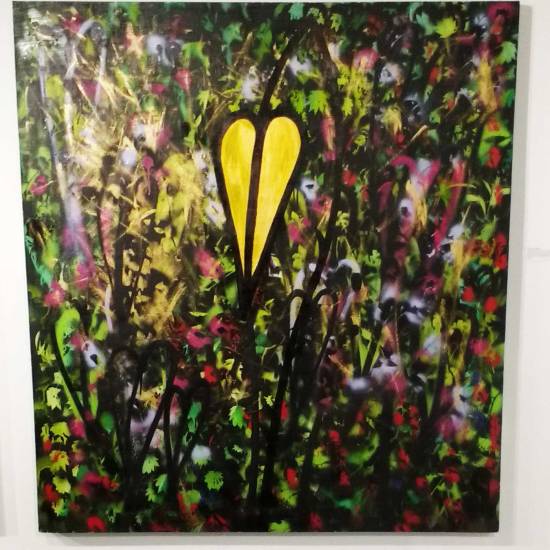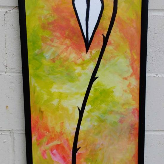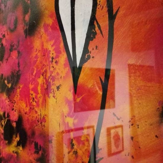 A Leaf, (2016) – Acrylic, spray paint, gloss varnish 105cm x 45cm, painted on board, in gold frame and under glass.
