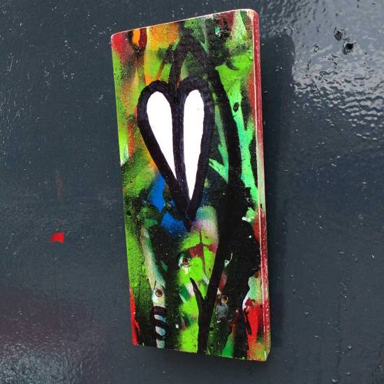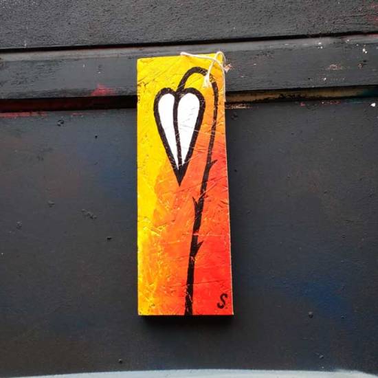 (2016 – Acrylic, marker pen on recycled wood 70cm x 35cm)