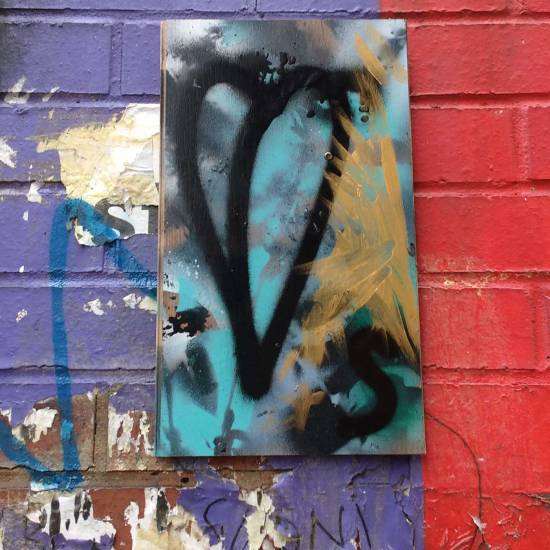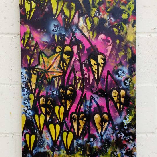 Sean Worrall Sometimes They Have Thorns (2016 – Acrylic, marker pen on recycled wood) (sold)